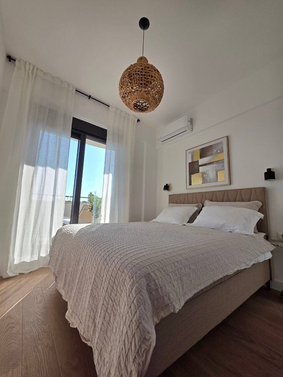 For the first time, a modern, stylishly decorated apartment Laurel is available for rent — the perfect option for a summer vacation! 📍 Location: just 300 meters to the beach, 2 km to Budva 🏢 Floor: 8th, building with an elevator 🚗 Parking: public parking in the yard 🌊 View: breathtaking panoramic sea view from the spacious terrace Features: Internal area: 42 m² Terrace: 30 m² Accommodation: up to 4 guests Bedroom: double bed, wardrobe Living room: sofa bed, SMART TV, dining table Kitchen: refrigerator with freezer, microwave, cooktop, dishwasher, dishes and cooking utensils Bathroom: shower cabin, washing machine Terrace: 2 sun loungers, table and chairs Other: iron, ironing board, vacuum cleaner, hairdryer. Interior: decorated in natural earthy tones, everything is designed for comfortable living Pets are not allowed Children from 6 years old Minimum rental period — 7 nights September 16 – November 1: 89 €/night