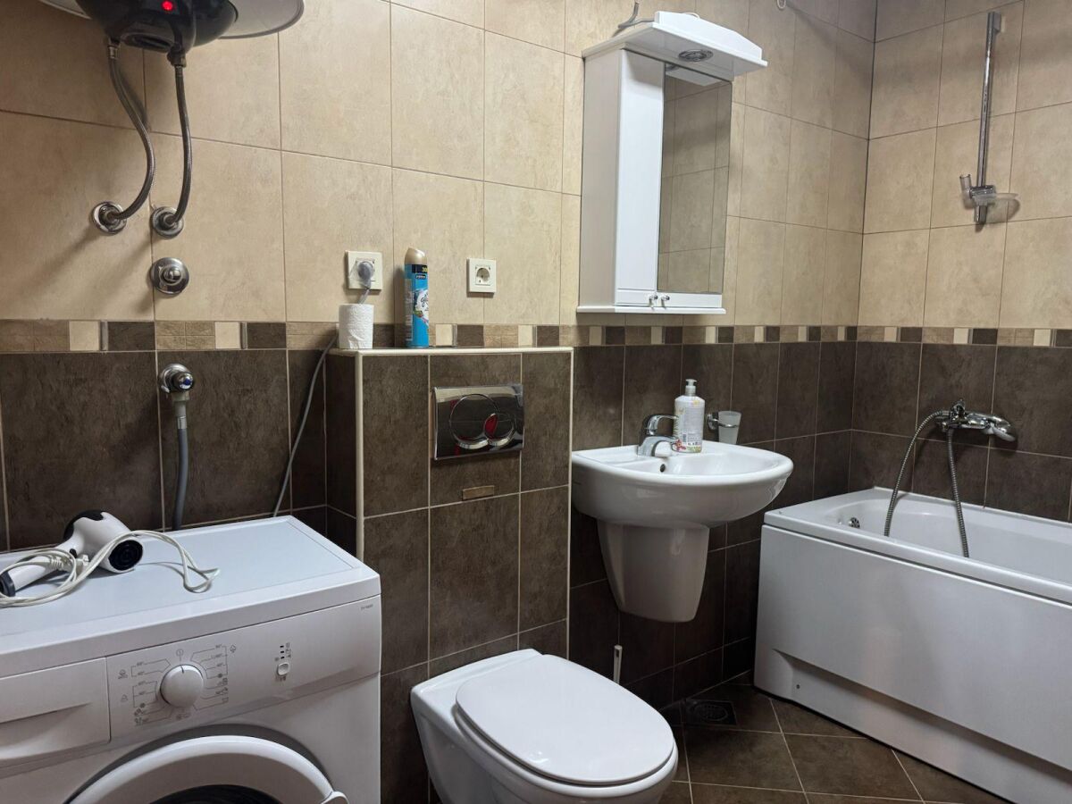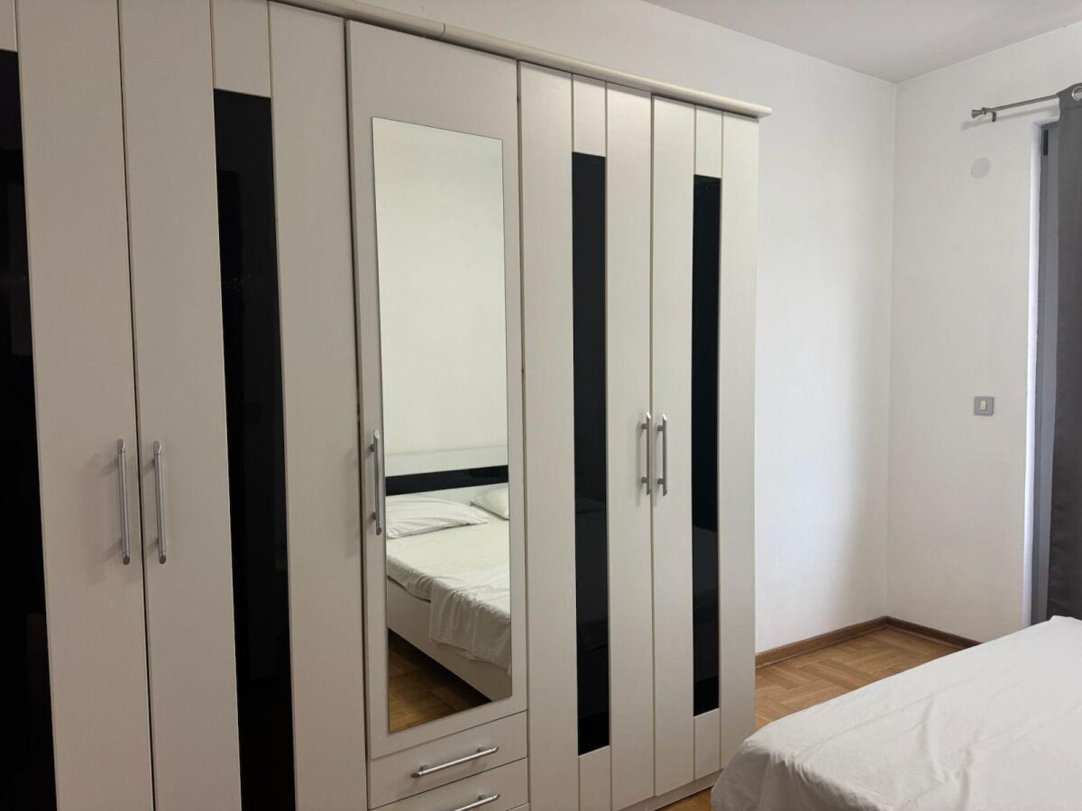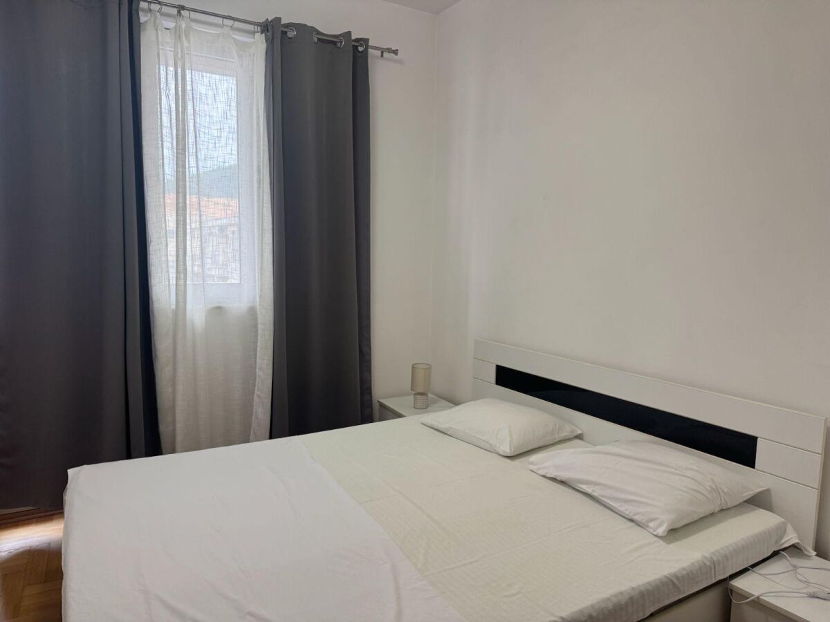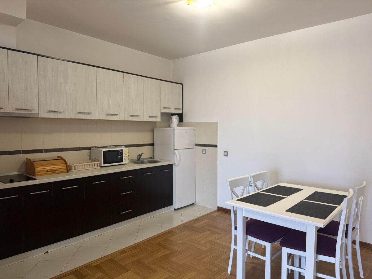 Rental until summer. City of Budva, district of Rozino. The apartment with an area of 61 m2 has a living room combined with a kitchen, 1 bedroom, a terrace, and a bathroom with a bathtub. In the bedroom - a large double bed, a spacious wardrobe. In the living room, there is a sofa for 2 people. In the kitchen - a stove, a microwave, a large refrigerator, a set of dishes. There is air conditioning, television, wi-fi internet, and a washing machine. It is a 12-minute walk to the sea to the Slavic beach. Nearby the house, there is a large supermarket, a cafe, a mini zoo, and an arcade.