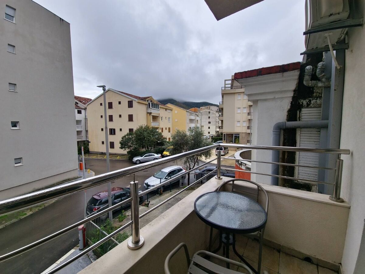 A modernly furnished two-bedroom apartment with a total area of 50 m² is for rent. The apartment is located in a fantastic location above the Milmedika clinic and the Eko gas station on the main boulevard in Budva. By structure, it is a two-bedroom apartment and consists of: a living room with a kitchen and dining area, two bedrooms, a hallway, a bathroom and a terrace. The apartment is well-preserved and furnished with quality equipment. The building is located in an excellent location, only 300 m from the beach. Payment terms: one-year contract, payment in advance – first and last rent, as well as a deposit in the amount of one monthly rent. Possibility to rent a garage space for €100 per month.