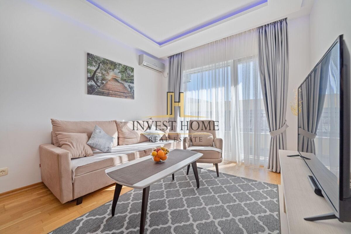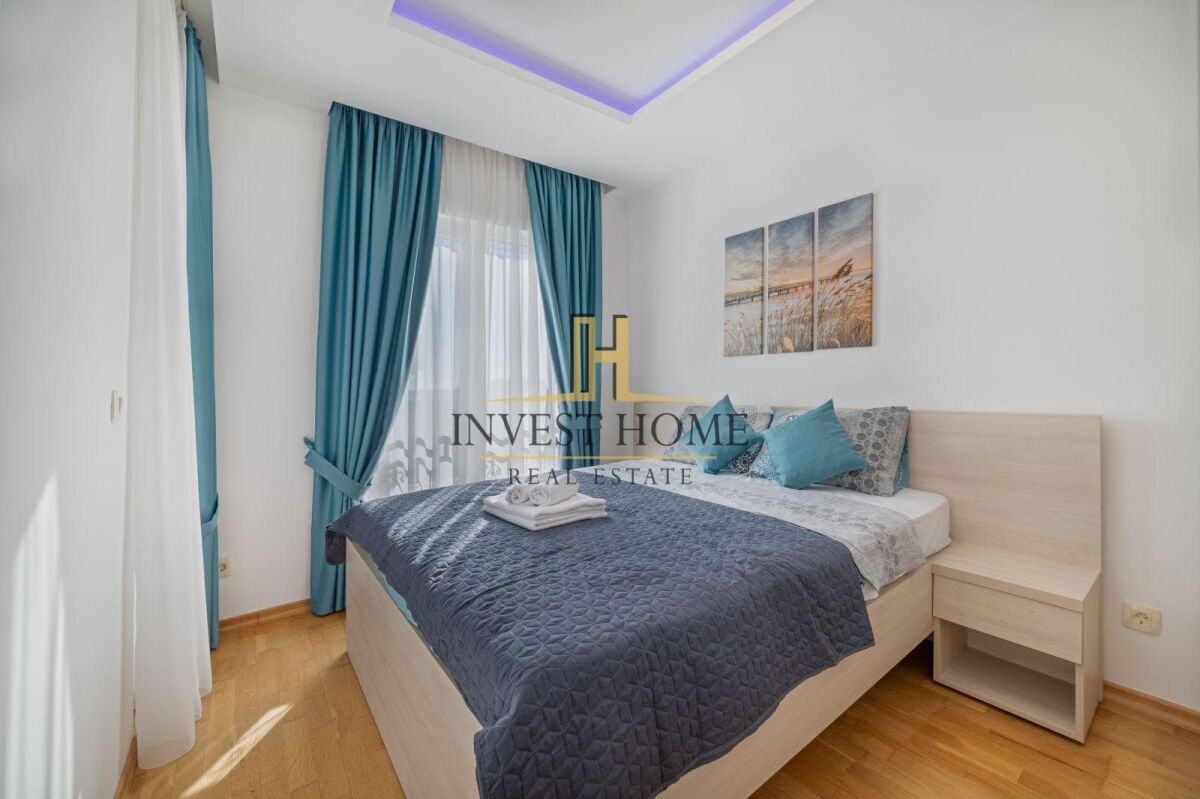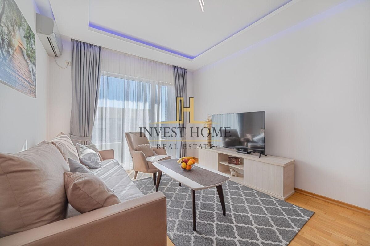 For rent one-bedroom apartment in Budva, area 52m2. The apartment is located on the second floor of a residential building that has an elevator. Apartment layout: living room with kitchen and dining room, bedroom, hallway, bathroom, balcony. It is located near cafes, restaurants, markets, as well as all city amenities. It has a parking space.