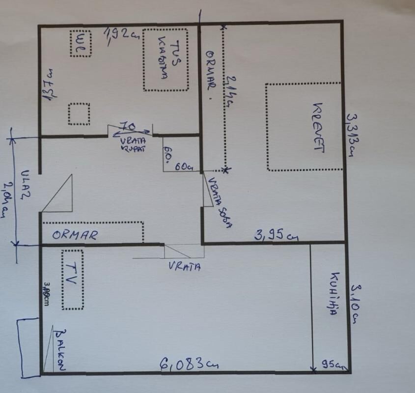 Apartment with an area of 40m2, in the Zlatica area. Floor: prezemle (high floor, three steps); safe, there is an additional door. The apartment has a cozy layout with 1 bedroom, a terrace. Public parking is located near the house or private parking. Fully equipped built-in kitchen: oven, full-size refrigerator, dishwasher, washing machine; air conditioner, large boiler. Payment for the month + utilities + 20 e (house maintenance and garbage removal). Pets - upon request. Payment upfront: for the first + last months + deposit.