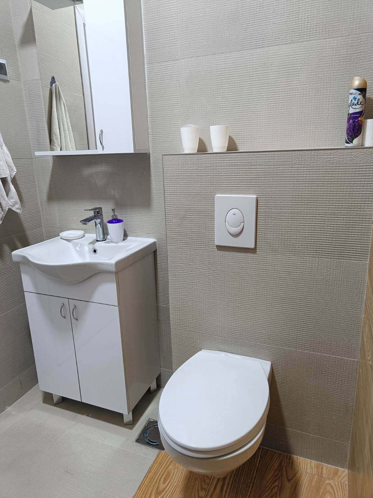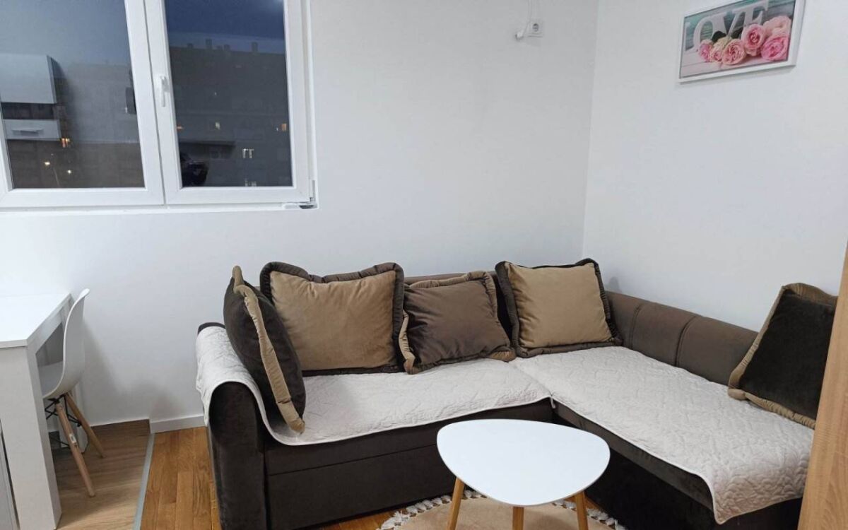 A modern one-bedroom apartment is for rent in a new building in the center of Podgorica.