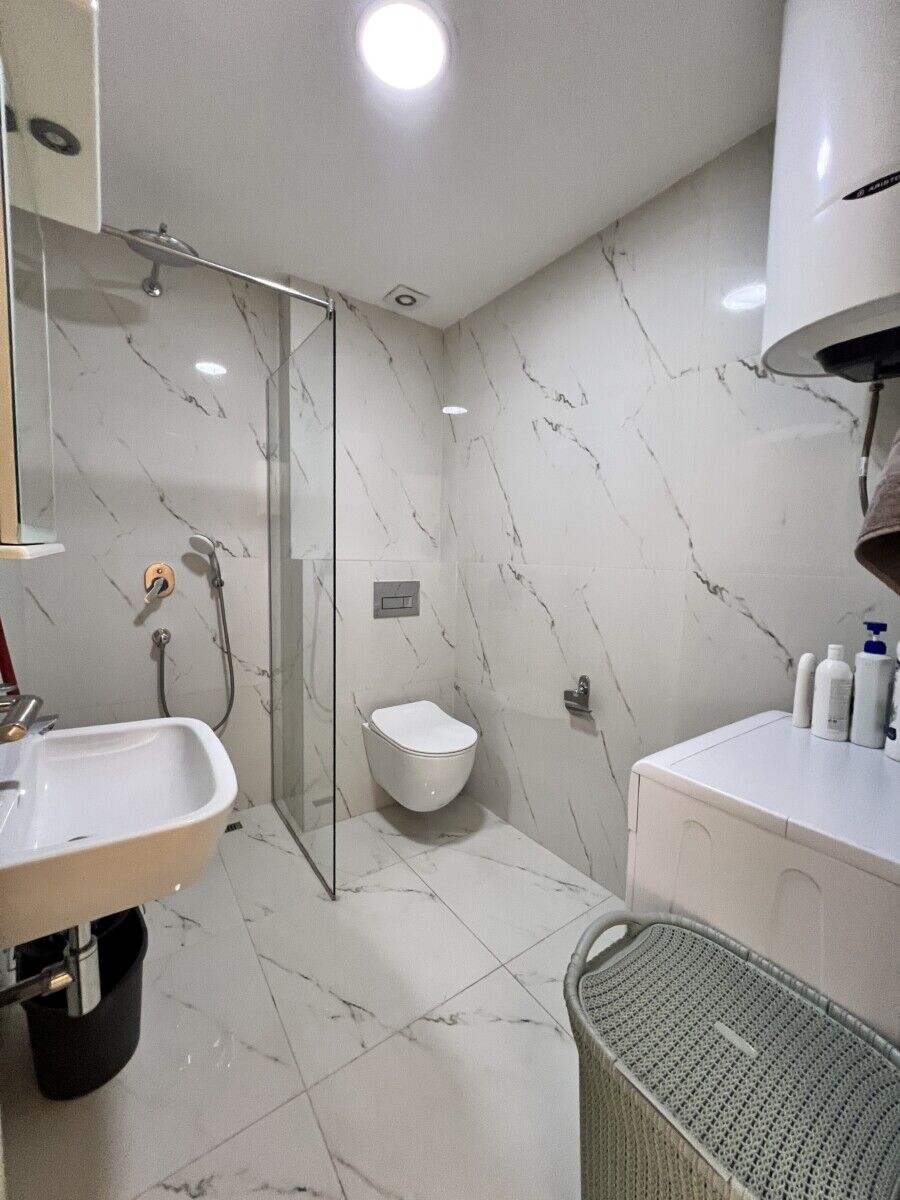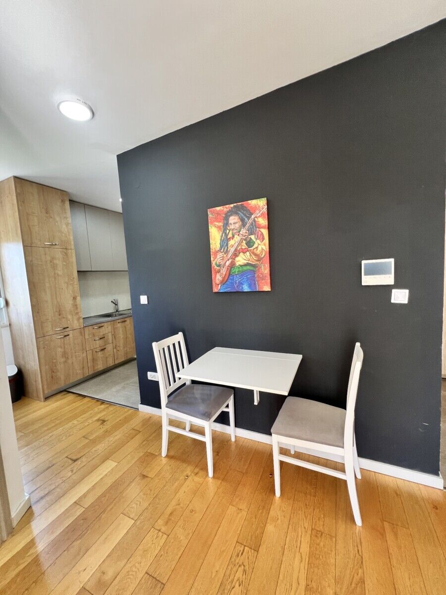 A one-bedroom apartment with an area of 41 m² is for rent on the second floor of a residential building with an elevator. The apartment is fully furnished and ready to move in. The building is located directly across from the Ribnica café. The monthly rent is 500 €.