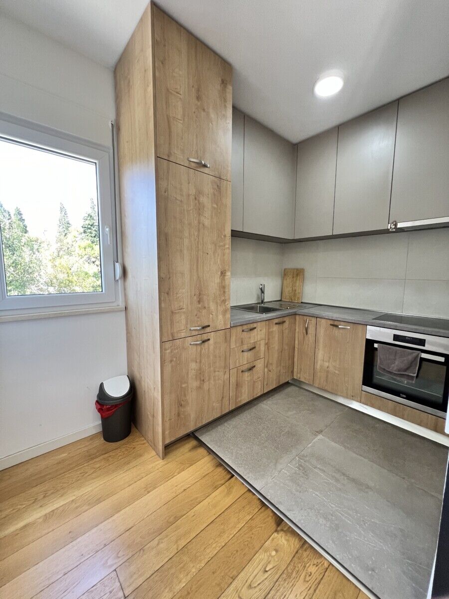 A one-bedroom apartment with an area of 41 m² is for rent on the second floor of a residential building with an elevator. The apartment is fully furnished and ready to move in. The building is located directly across from the Ribnica café. The monthly rent is 500 €.