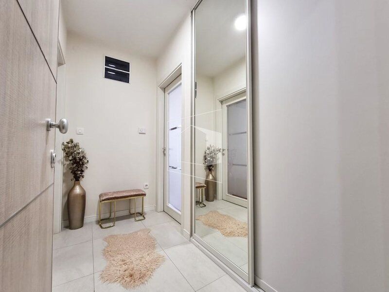 A two-room nicely furnished apartment for rent, 68m2 , in the new Central Point neighborhood in Podgorica. It is located on the 6th floor in a building that has two elevators and a regularly maintained entrance. One garage space is provided. It is oriented to the northeast. Structure : entrance hall, living room with dining room and kitchen, hallway, two bedrooms, toilet, bathroom and two terraces. The second bedroom will be furnished according to the needs of the future tenant. There is the possibility of renting another garage space for an additional €50. It is located in the immediate vicinity of two shopping centers - Delta and City Mall and is located between Cetinjsko puta, Marko Radovića street and the new boulevard towards the Clinical Center of Montenegro. When signing the Lease Agreement, the Tenant is obliged to pay a deposit in the amount of one month's rent, which will be returned at the end of the Agreement, if all the provisions of the Agreement have been complied with.
