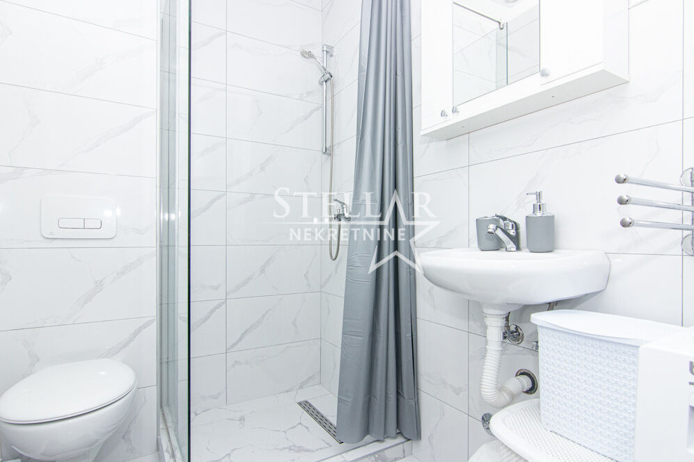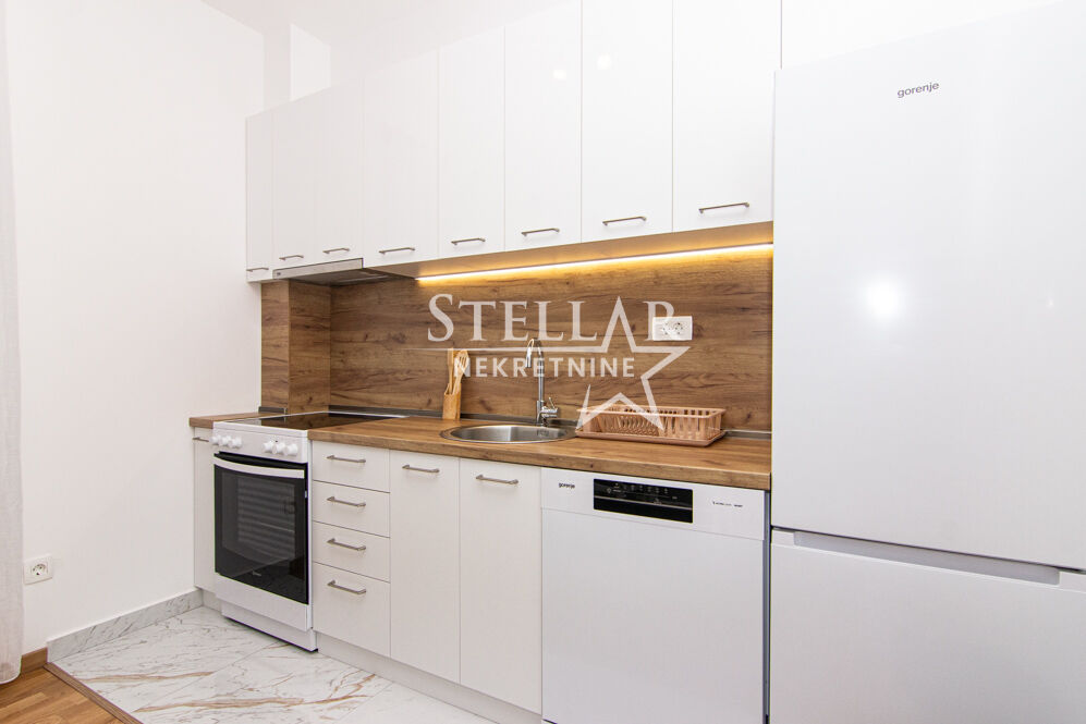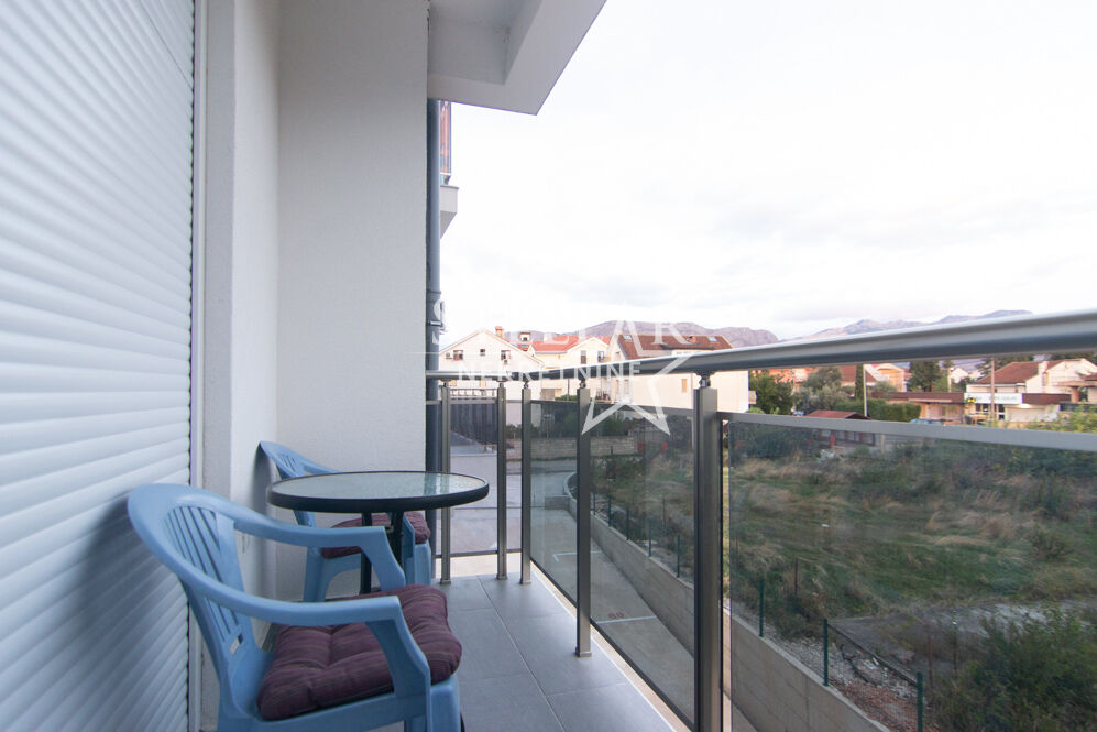 Zagorič two-bedroom apartment on the first floor, with parking. A fully furnished new two-bedroom apartment of 61m2 is for rent in Zagorič. The building is new and just being moved into. The apartment is located on the first floor in a building with an elevator. It has two air conditioners, one in the living room and another in the bedroom. It has a dishwasher and a washing machine. It is not pet-friendly. It is located near the Primary School "Branko Božović". Nearby are kindergartens, shops, cafes, gyms, and Mount Gorica. One private parking space is included with the apartment. It is rented for a longer period with a mandatory deposit. Property ID S69 +382 69 618 445