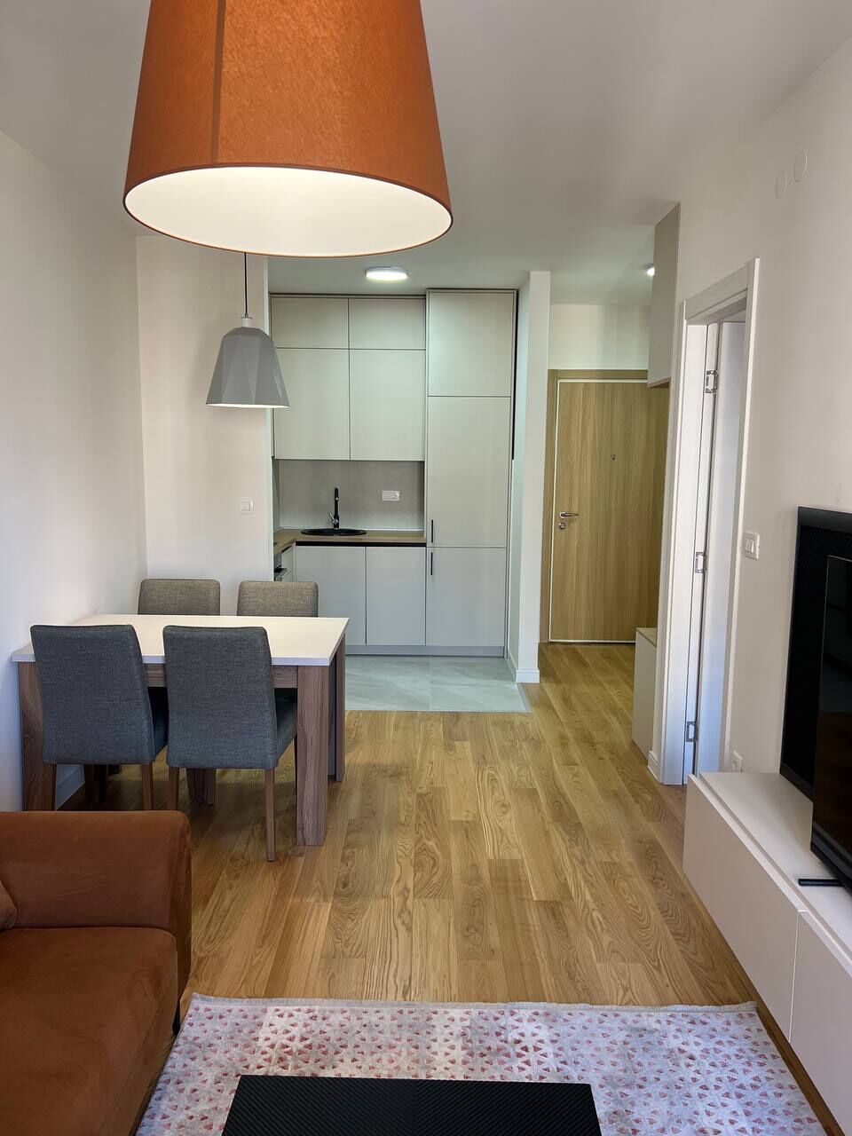 One bedroom apartment of 41m2 for rent in Central Point. It is located on the 5th floor. The location of the apartment is in the immediate vicinity of the shopping centers "Delta city" and "City Mall", on the plot of the former Tobacco Factory in Podgorica. A garage space can be rented for an additional fee.