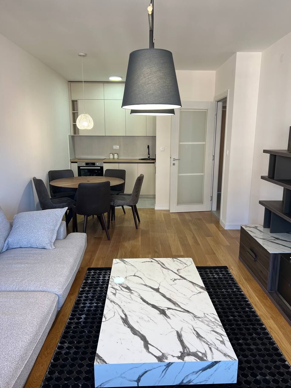 47m2 apartment for rent in Central Point. It is located on the 5th floor. The location of the apartment is in the immediate vicinity of the shopping centers "Delta city" and "City Mall", on the plot of the former Tobacco Factory in Podgorica. A garage space can be rented for an additional fee.