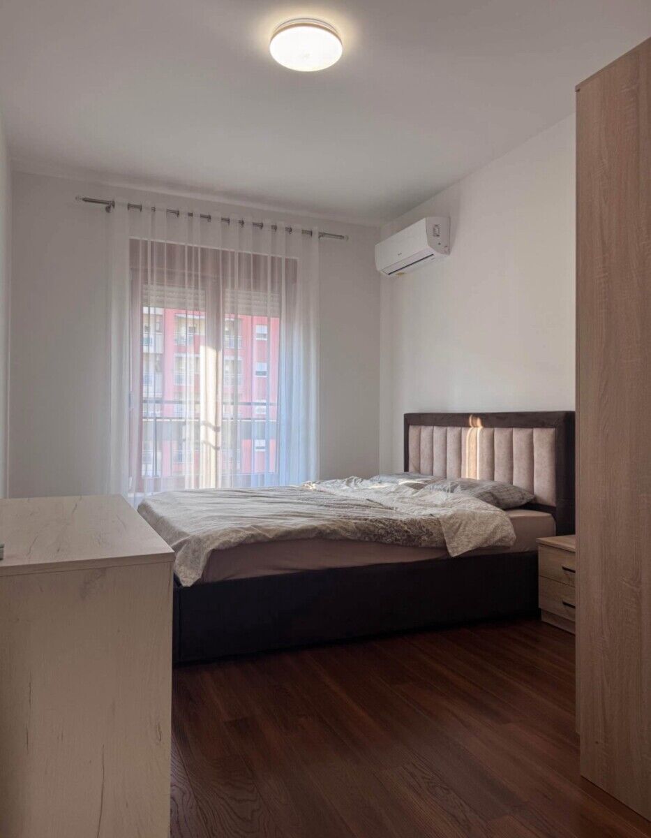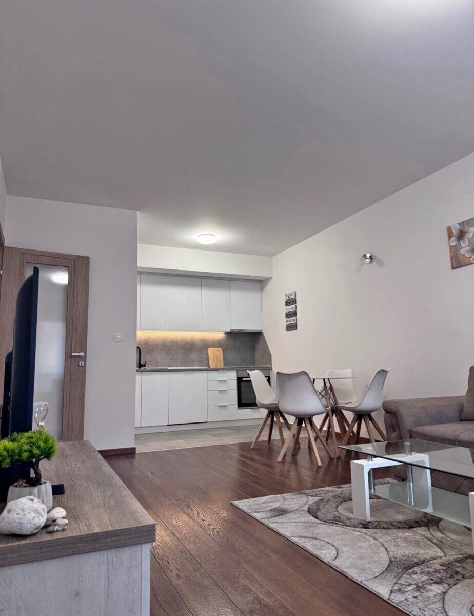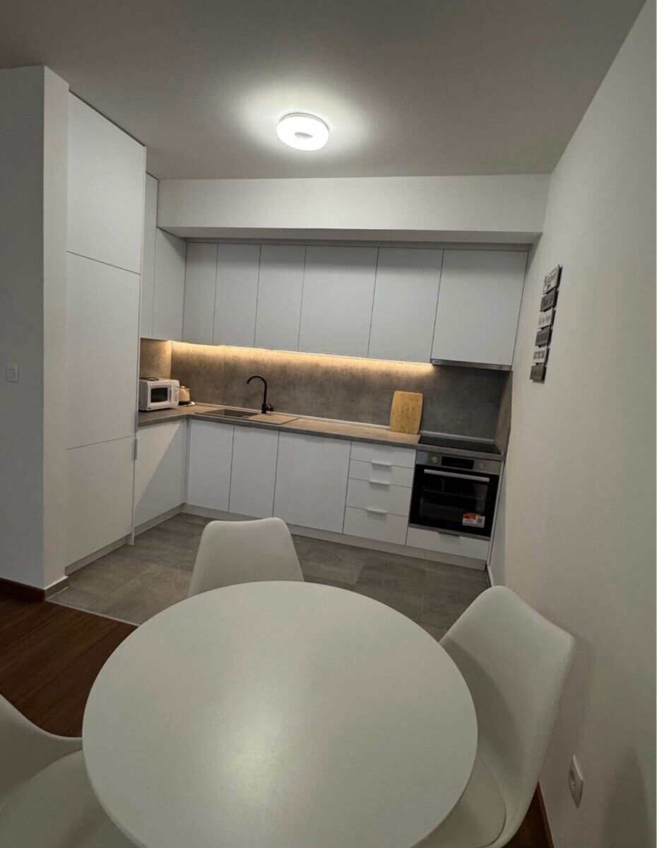 For rent: two-bedroom apartment – Master quarter Area: 72 m² Price: €1,200 per month Garage space included in the price A luxuriously furnished two-bedroom apartment is for rent in the Master quarter. The apartment is located in a new building, is modernly decorated, and fully equipped with quality furniture and appliances. It consists of a living room with a dining area and kitchen, a bedroom, a bathroom, and a terrace. The apartment is spacious, bright, and ready to move in immediately. Location: Master quarter – excellent connectivity and proximity to all amenities (shopping center, stores, restaurants, office buildings).
