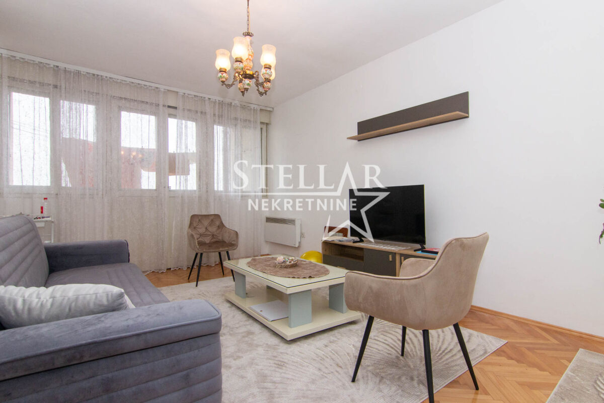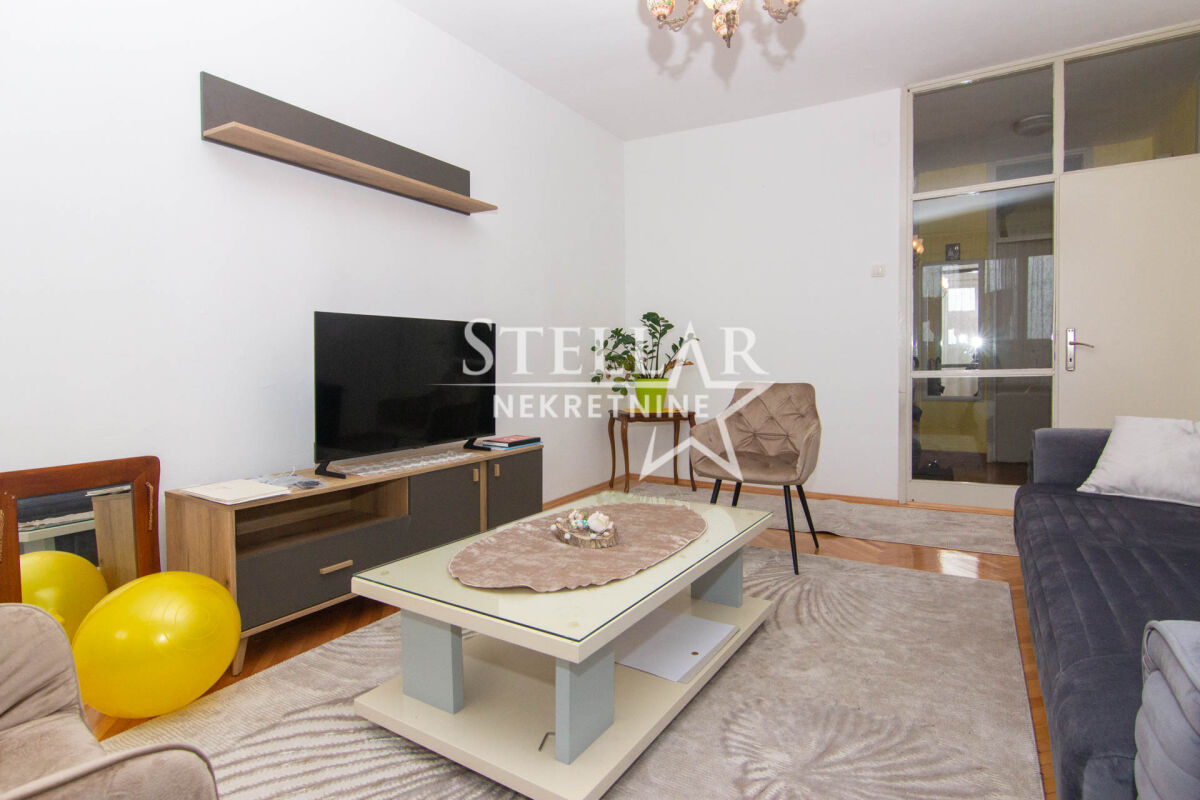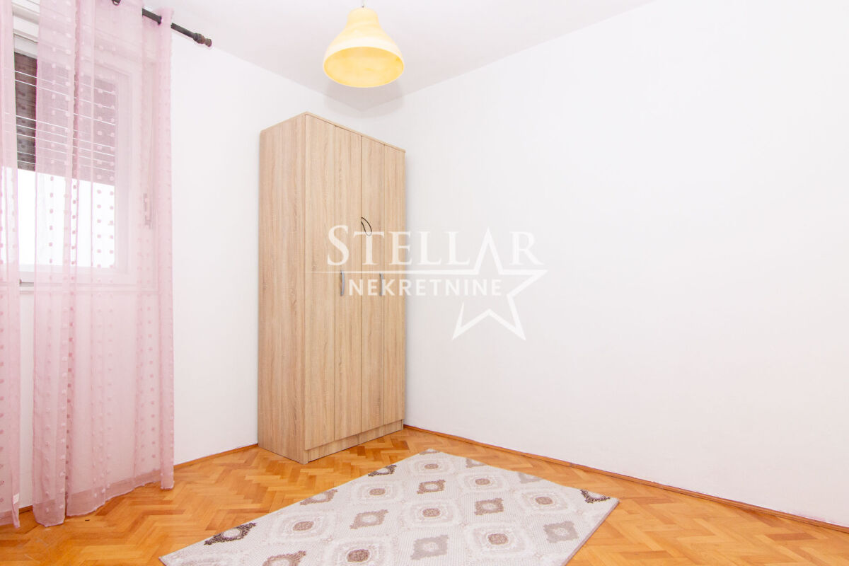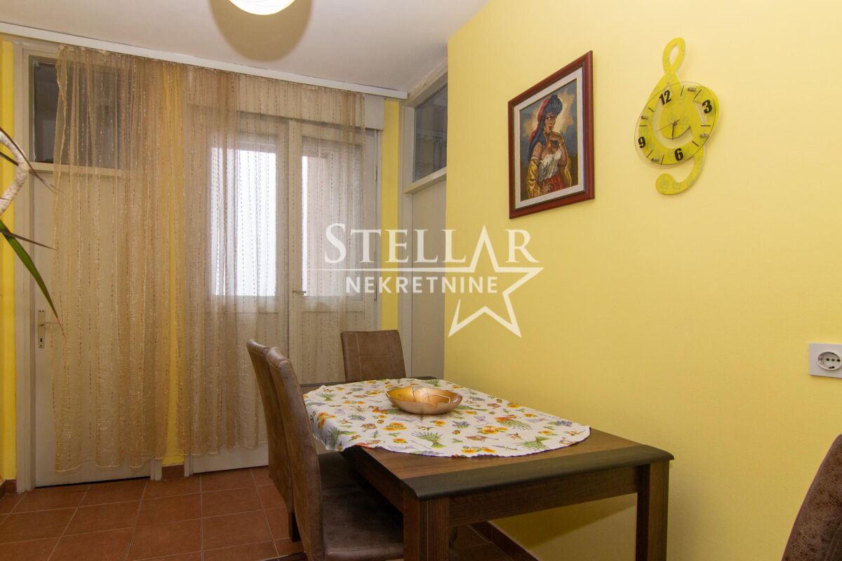 A furnished two-bedroom apartment of 80m2 is for rent. The apartment is located on the ninth floor in a building with two elevators. Pets are not allowed in the apartment. The apartment has a separate kitchen and dining room, and it also has a pantry. The apartment is located in a high-rise building next to Gintaš. Nearby there are restaurants, a market, cafes, boutiques, shops, schools, and kindergartens. Parking is public and available all around the building. It is rented for a longer period with a mandatory deposit. Property ID S73 +382 69 618 445