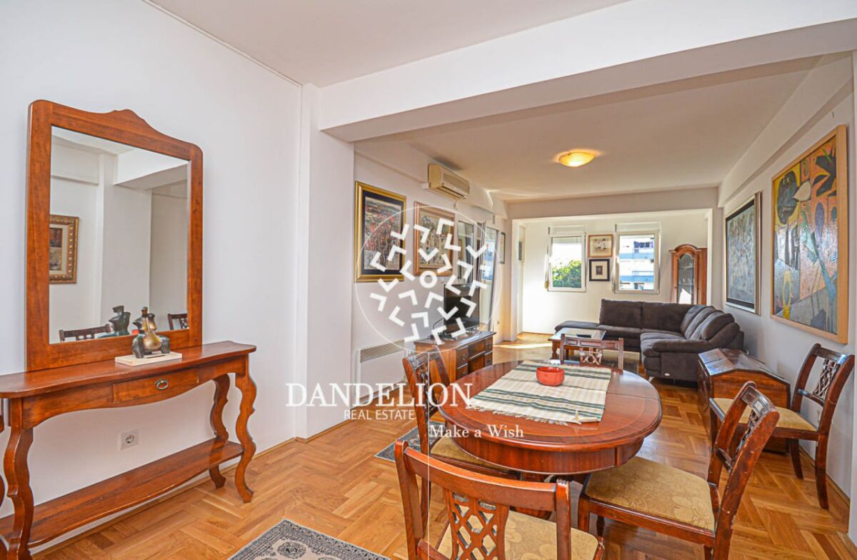 Two-room apartment for rent in Moskovska street, near the Aroma market. The apartment has 82 m2 + garage. It is located on the 3rd floor. Structure of the apartment: living room, dining room, separate kitchen, two bedrooms, and the most attractive part of the apartment is the covered terrace where you can stay for at least 8-9 months.