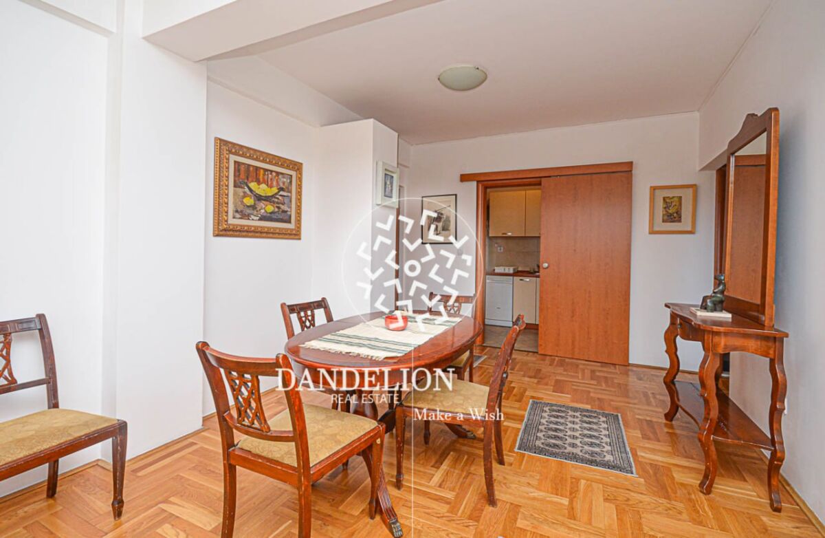 Two-room apartment for rent in Moskovska street, near the Aroma market. The apartment has 82 m2 + garage. It is located on the 3rd floor. Structure of the apartment: living room, dining room, separate kitchen, two bedrooms, and the most attractive part of the apartment is the covered terrace where you can stay for at least 8-9 months.