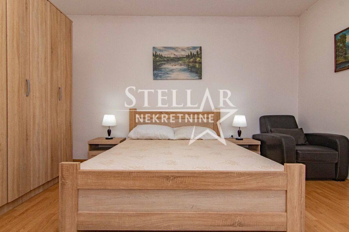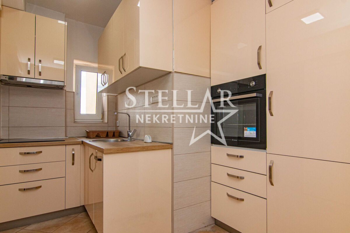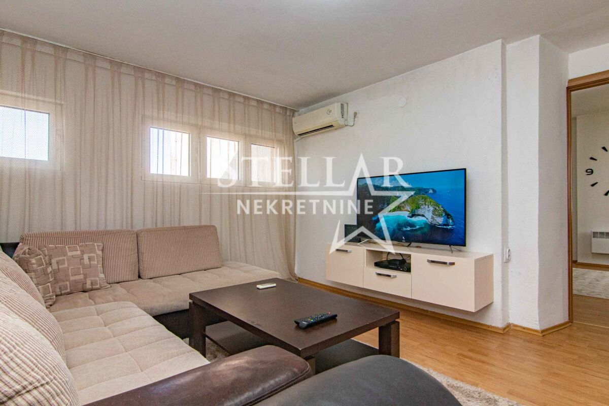 About the apartment: A two-bedroom apartment is for rent in the strict center of Podgorica - Trg Nezavisnosti. The area of the apartment is 58m2, located on the fourth floor. The apartment is oriented on both sides, the living room has a view of Trg Nezavisnosti, while the bedrooms are south-oriented and overlook the building's courtyard. The apartment has been renovated and is fully equipped. All appliances in the apartment are new, as well as the kitchen elements. Anodized metalwork, security door, 3 air conditioners, wall radiators, 2 LCD TVs with 200 channels, as well as unlimited high-speed internet. It has all the equipment necessary for a household, as well as dishes. About the building: The building is an old construction, the entrance does not have an elevator. In the building's courtyard, there is a large parking lot for the residents, a basketball court, and a playground for children. It is rented for a longer period with a mandatory deposit. Property ID M156 +382 69 618 445