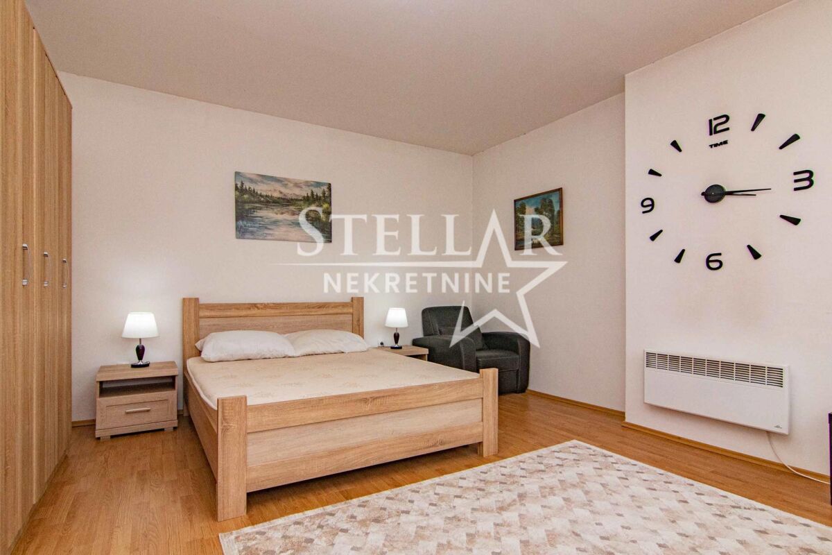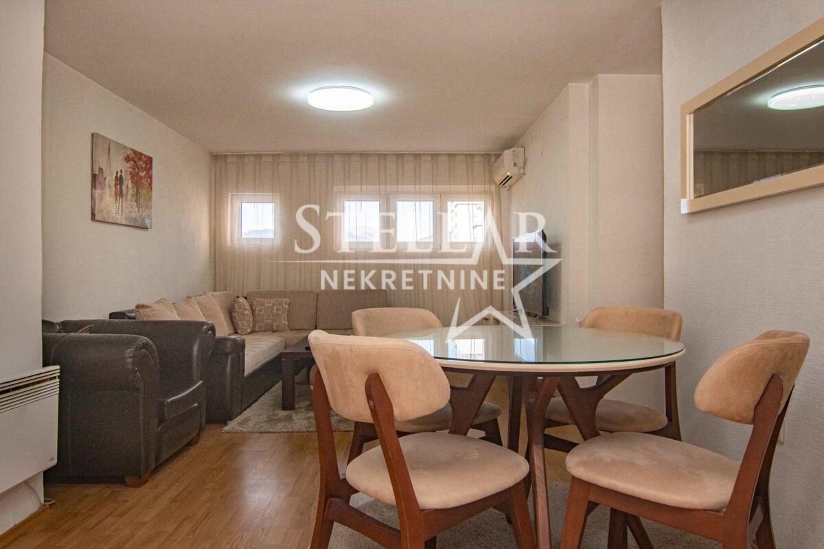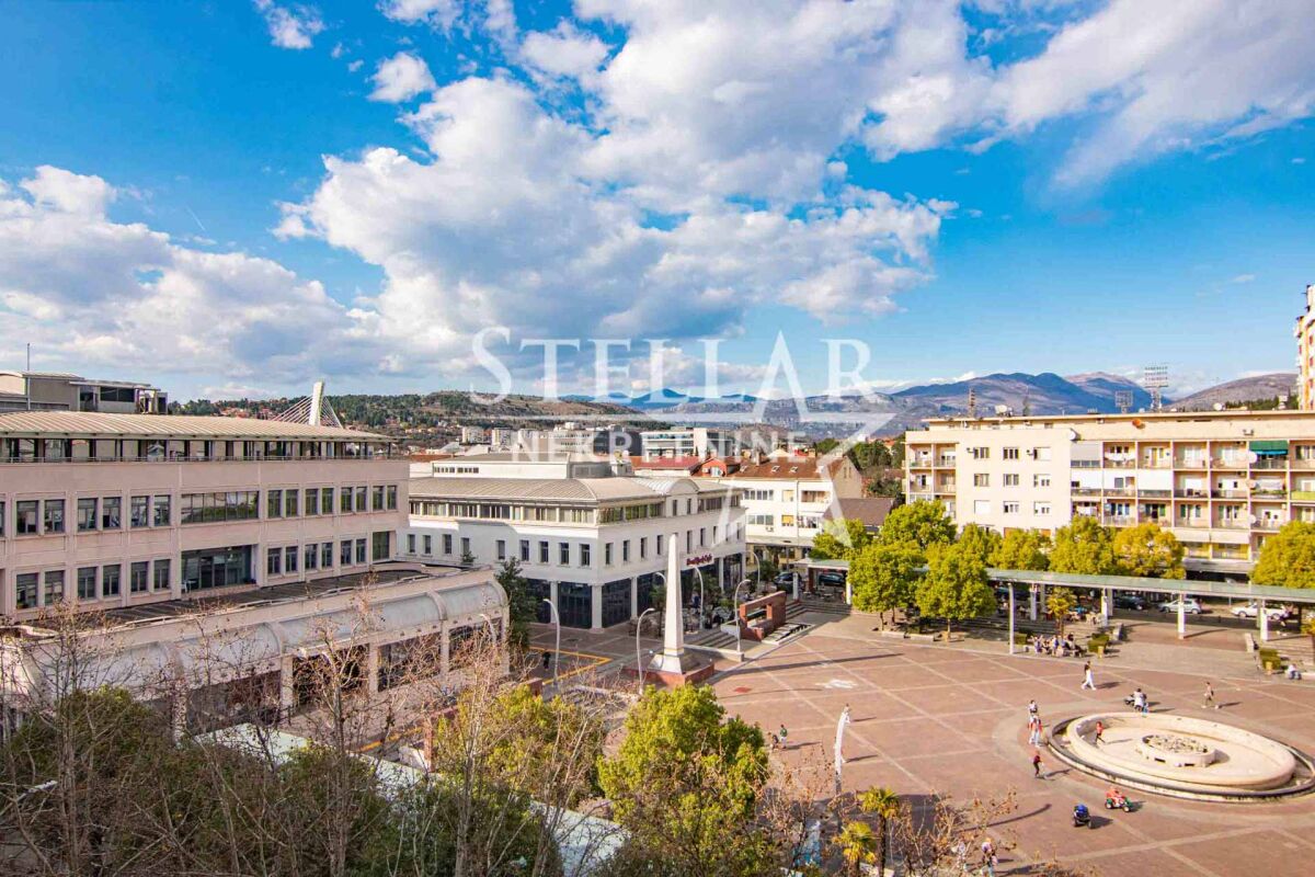 About the apartment: A two-bedroom apartment is for rent in the strict center of Podgorica - Trg Nezavisnosti. The area of the apartment is 58m2, located on the fourth floor. The apartment is oriented on both sides, the living room has a view of Trg Nezavisnosti, while the bedrooms are south-oriented and overlook the building's courtyard. The apartment has been renovated and is fully equipped. All appliances in the apartment are new, as well as the kitchen elements. Anodized metalwork, security door, 3 air conditioners, wall radiators, 2 LCD TVs with 200 channels, as well as unlimited high-speed internet. It has all the equipment necessary for a household, as well as dishes. About the building: The building is an old construction, the entrance does not have an elevator. In the building's courtyard, there is a large parking lot for the residents, a basketball court, and a playground for children. It is rented for a longer period with a mandatory deposit. Property ID M156 +382 69 618 445