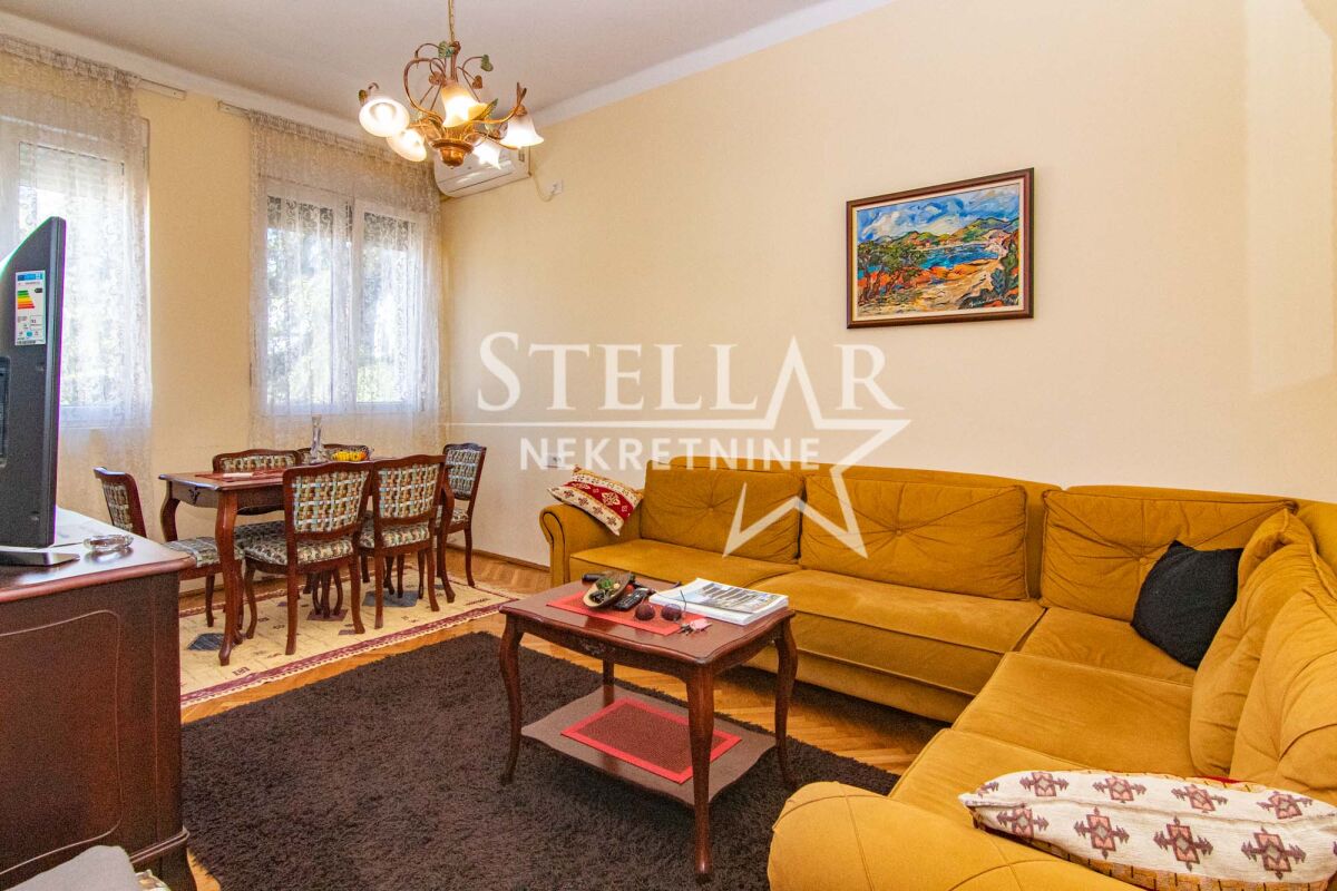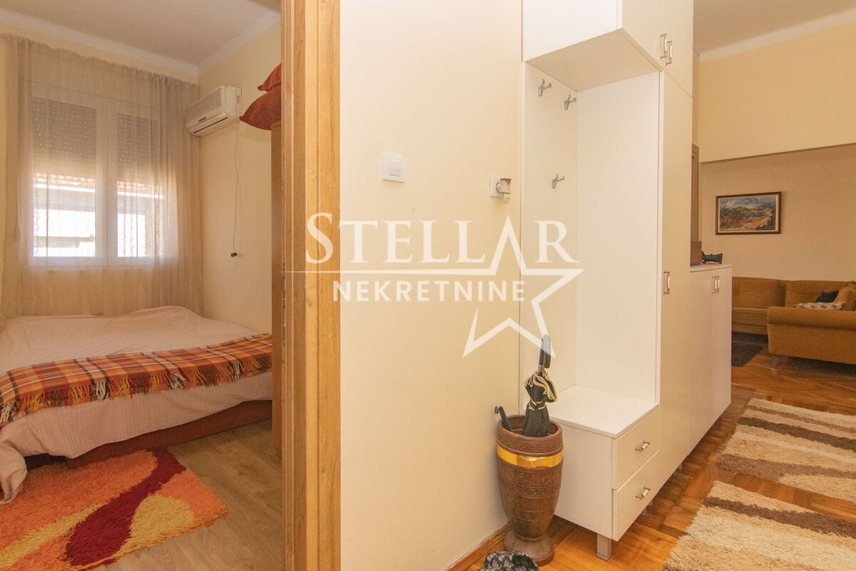 Location of the apartment: Center, Podgorica Area of the apartment: 57m2 Bedrooms: 2 Floor: 3 Elevator: No A two-bedroom apartment is for rent in the city center. The apartment is fully furnished. It has a long hallway and two spacious bedrooms. A true representative of apartments in older buildings. Since it has been modified, this apartment does not have a balcony or terrace; however, the bedroom and living room each have two windows, and the kitchen also has its own windows, making the apartment very well lit at any time of the day. The building does not have an elevator and is located on Njegoševa street, known as a favorite promenade for many citizens of Podgorica. The city center offers all amenities, so this apartment can be said to be well positioned. The apartment is rented for a longer period with a mandatory deposit. Property ID M509 +382 69 618 445 info@stellarnekretnine.me