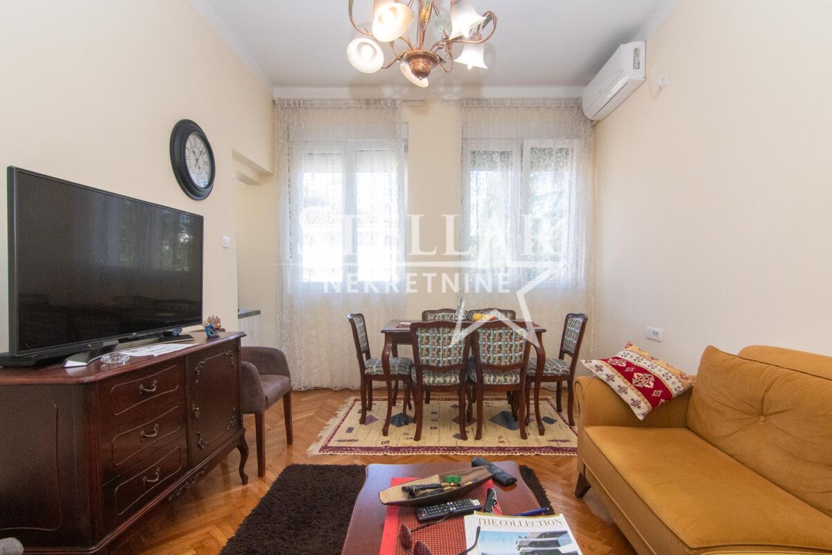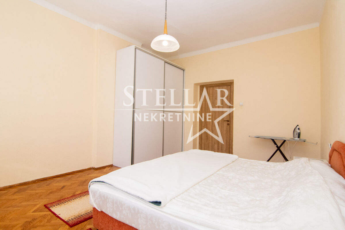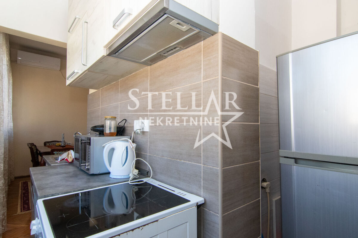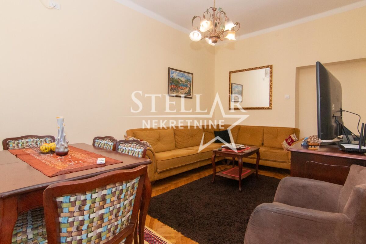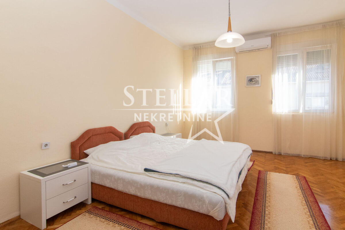 Location of the apartment: Center, Podgorica Area of the apartment: 57m2 Bedrooms: 2 Floor: 3 Elevator: No A two-bedroom apartment is for rent in the city center. The apartment is fully furnished. It has a long hallway and two spacious bedrooms. A true representative of apartments in older buildings. Since it has been modified, this apartment does not have a balcony or terrace; however, the bedroom and living room each have two windows, and the kitchen also has its own windows, making the apartment very well lit at any time of the day. The building does not have an elevator and is located on Njegoševa street, known as a favorite promenade for many citizens of Podgorica. The city center offers all amenities, so this apartment can be said to be well positioned. The apartment is rented for a longer period with a mandatory deposit. Property ID M509 +382 69 618 445 info@stellarnekretnine.me