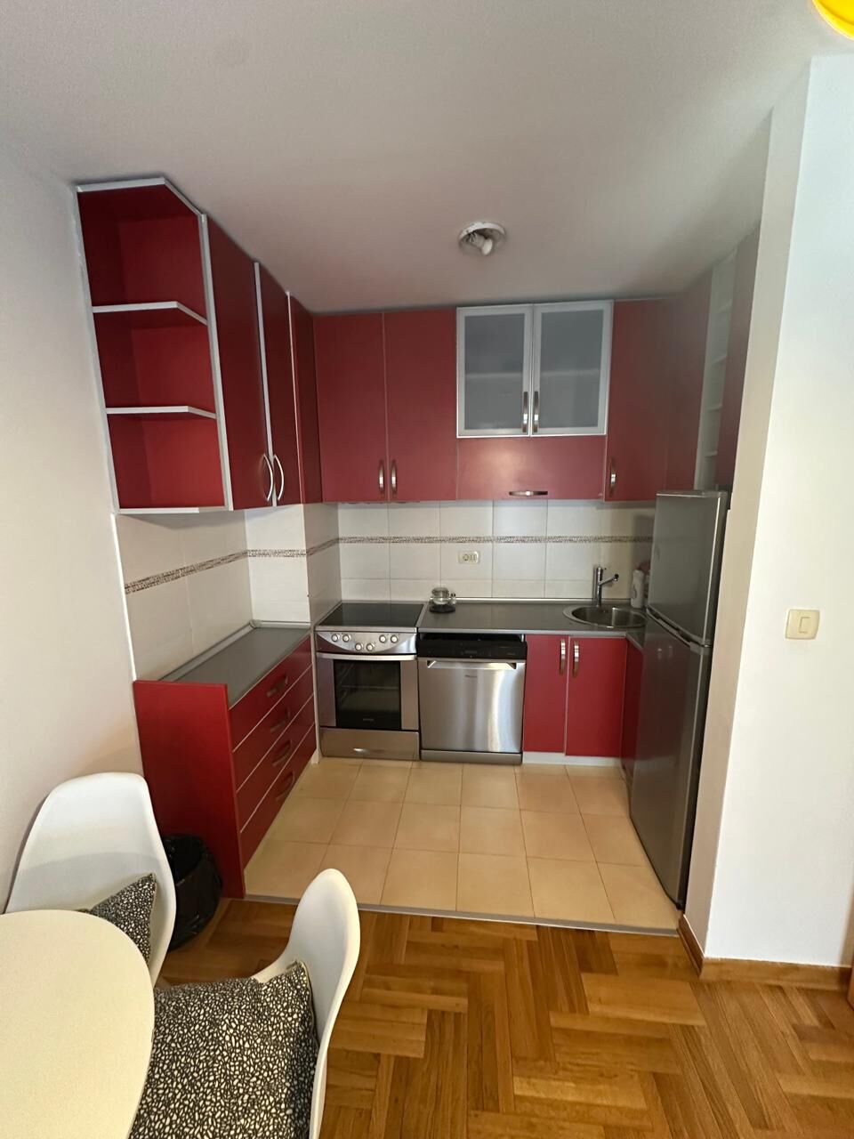 One bedroom furnished apartment for rent at Stari Aerodrom, Podgorica. The apartment has all the necessary things for a comfortable life, it is located on the second floor of a building with an elevator. The structure of the apartment is as follows: living room with kitchen and dining room, bedroom, hall, bathroom and terrace. The location of the apartment is attractive due to its proximity to schools, cafes and markets.