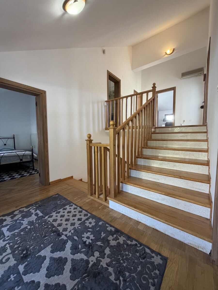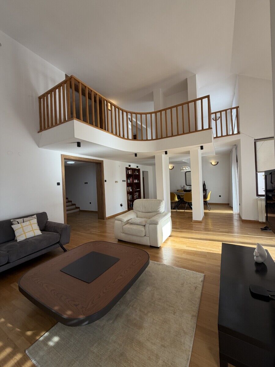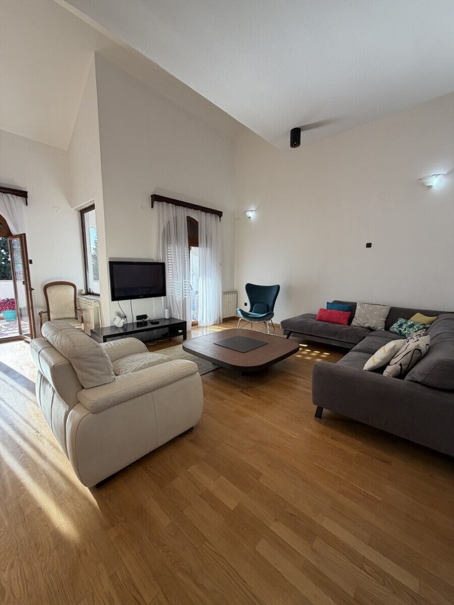 A five-room apartment with an area of 285 m² is being rented in a house located in the prestigious neighborhood of Gorica C. The apartment is exceptionally comfortable and functional, featuring two bathrooms, a guest toilet, and a laundry room, along with four parking spaces and a garage. It is situated in a quiet part of the city, ideal for family life. The monthly rent is €3,000.
