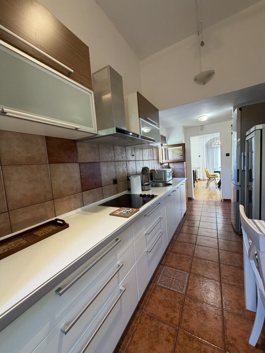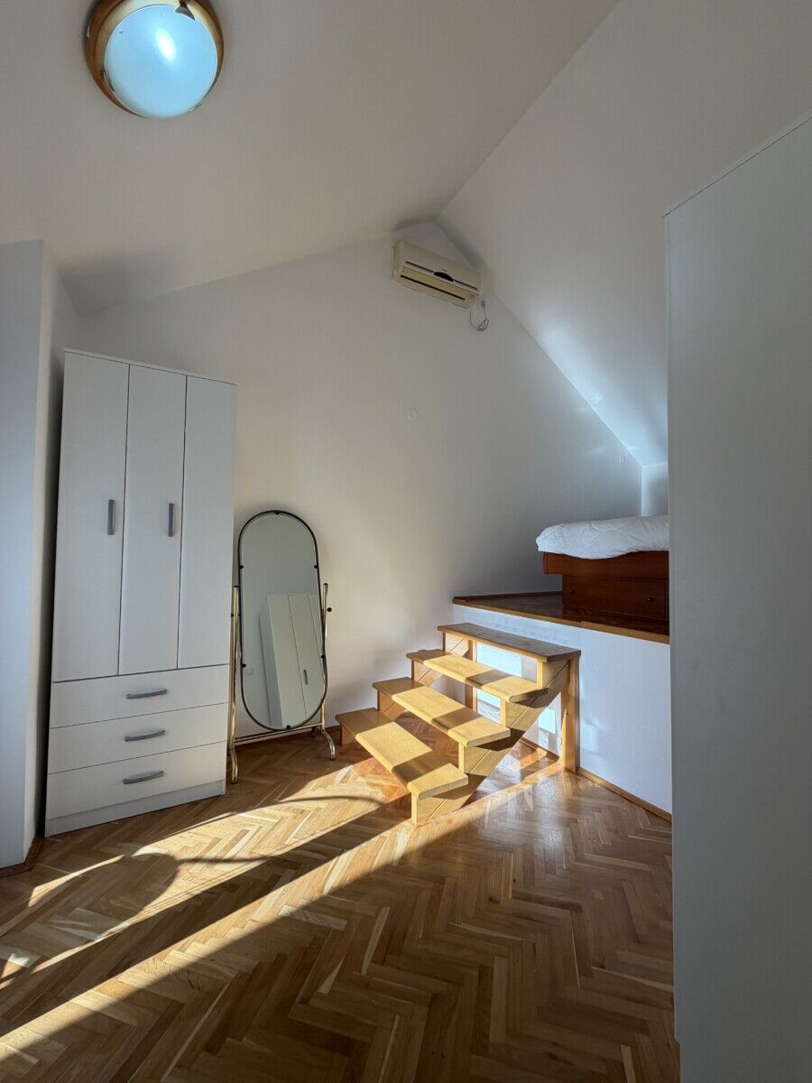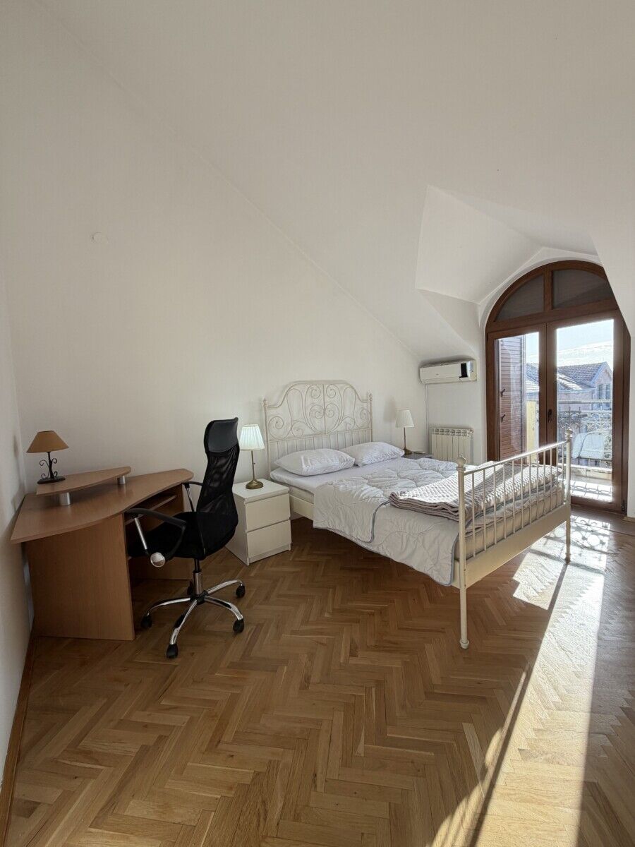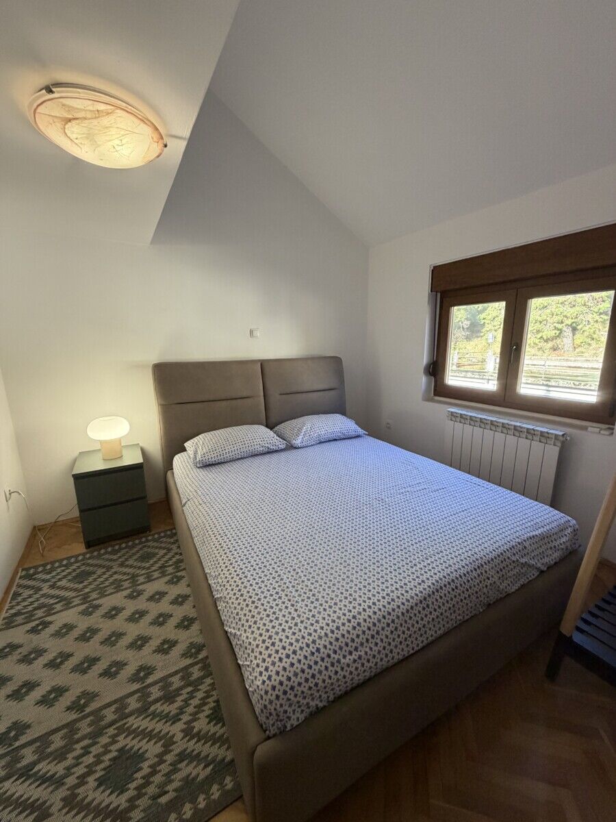 A five-room apartment with an area of 285 m² is being rented in a house located in the prestigious neighborhood of Gorica C. The apartment is exceptionally comfortable and functional, featuring two bathrooms, a guest toilet, and a laundry room, along with four parking spaces and a garage. It is situated in a quiet part of the city, ideal for family life. The monthly rent is €3,000.