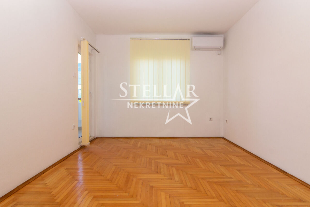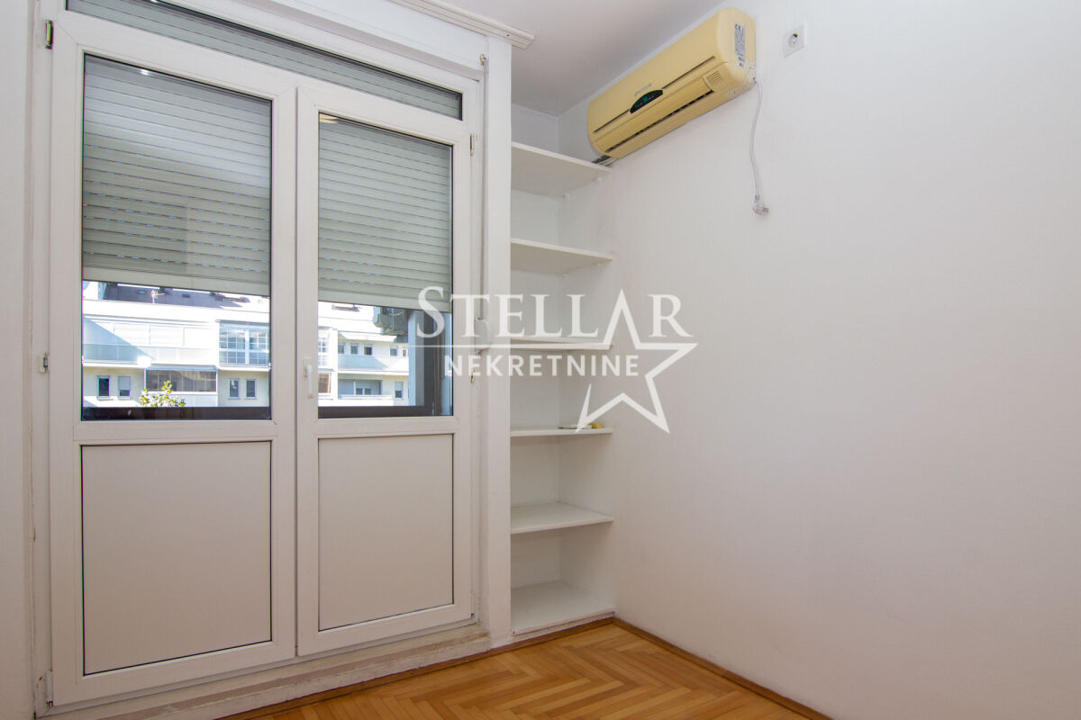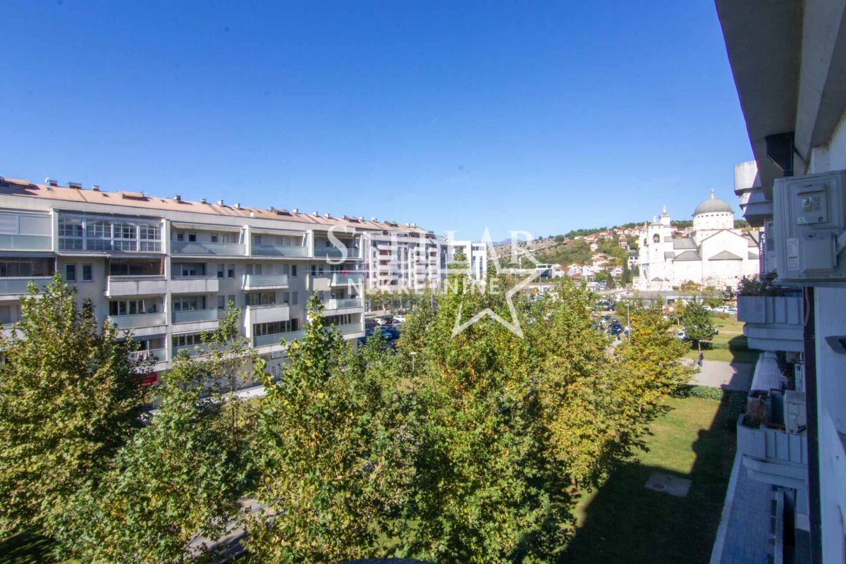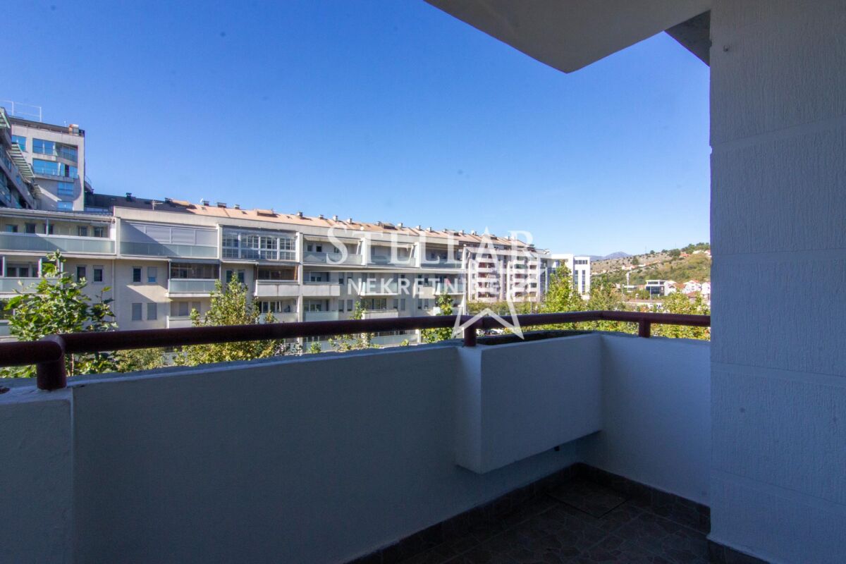 A two-bedroom empty apartment of 60m2 is for rent. The apartment is located on the third floor of a building without an elevator in the Preko Morače neighborhood. The apartment includes a kitchen, and other equipment consists of two air conditioning units, one in the living room and the other in the bedroom. It has a large terrace with a beautiful view. The apartment is not pet-friendly. The apartment is in an excellent location right by the Temple. Nearby, there are numerous cafes, restaurants, boutiques, green areas, schools, kindergartens, and gyms. Parking is public and is located around the building. It is available for a longer period with a mandatory deposit. Property ID S81 +382 69 618 445