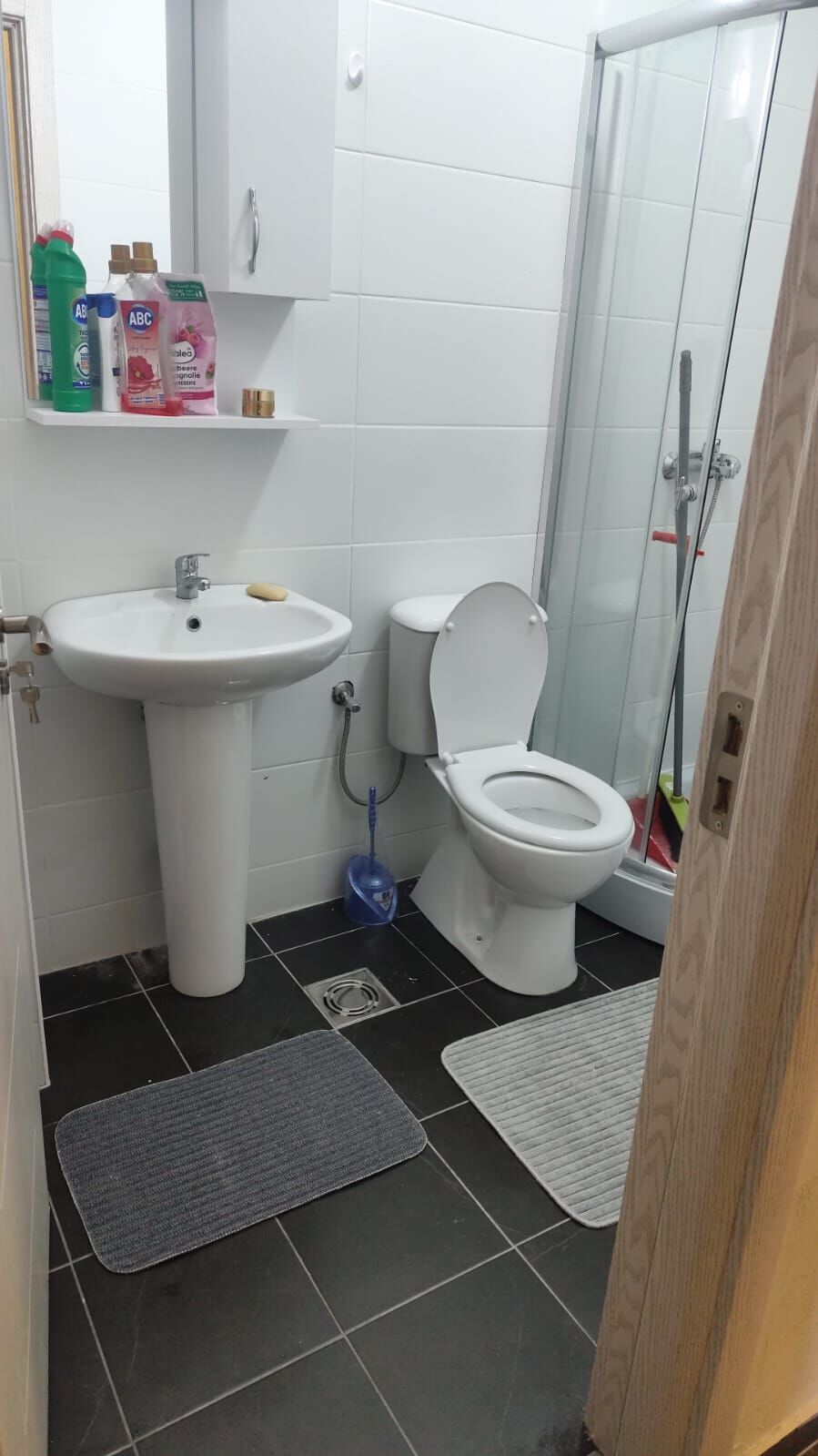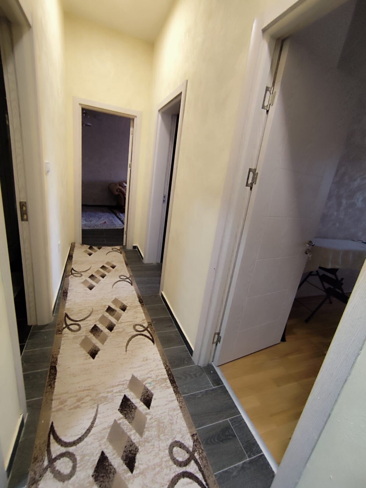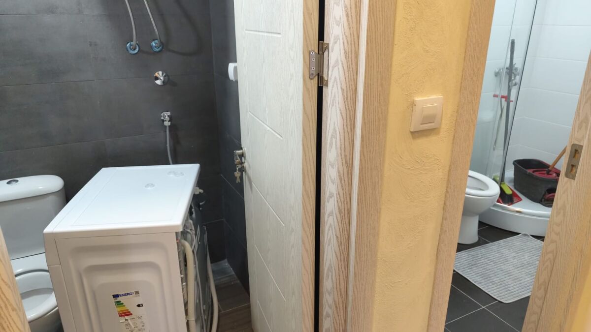 The 72m2 apartment is located on the first floor. It has two bedrooms, two bathrooms, two corridors. In front of the building is a playground for children. The apartment is fully equipped and ready to move into. The conditions are one rent and a deposit in the same amount.