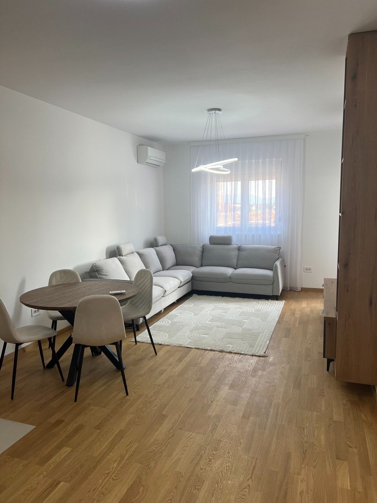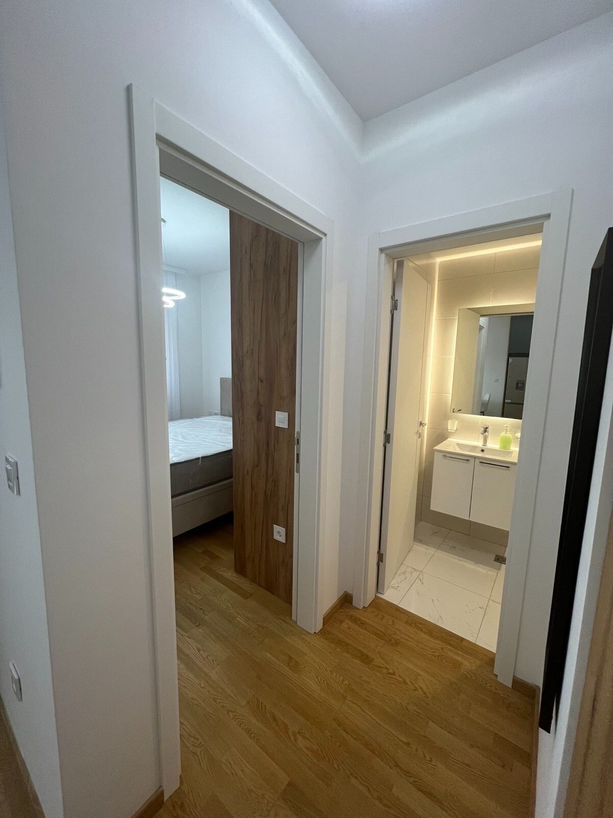Apartment for rent in Podgorica, at the Old Airport, in the Master-88 building. The apartment is nicely arranged and ready to move in immediately. It is located in a modern and quiet building with all necessary facilities nearby. The rental price is 500 euros per month. At the request of the tenant, it is possible to rent a garage space for an additional fee of 50 euros per month. The apartment is located on the first floor and has a view of the Mediterranean University.