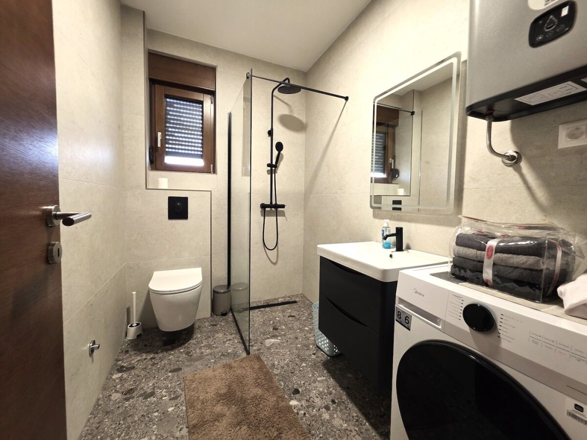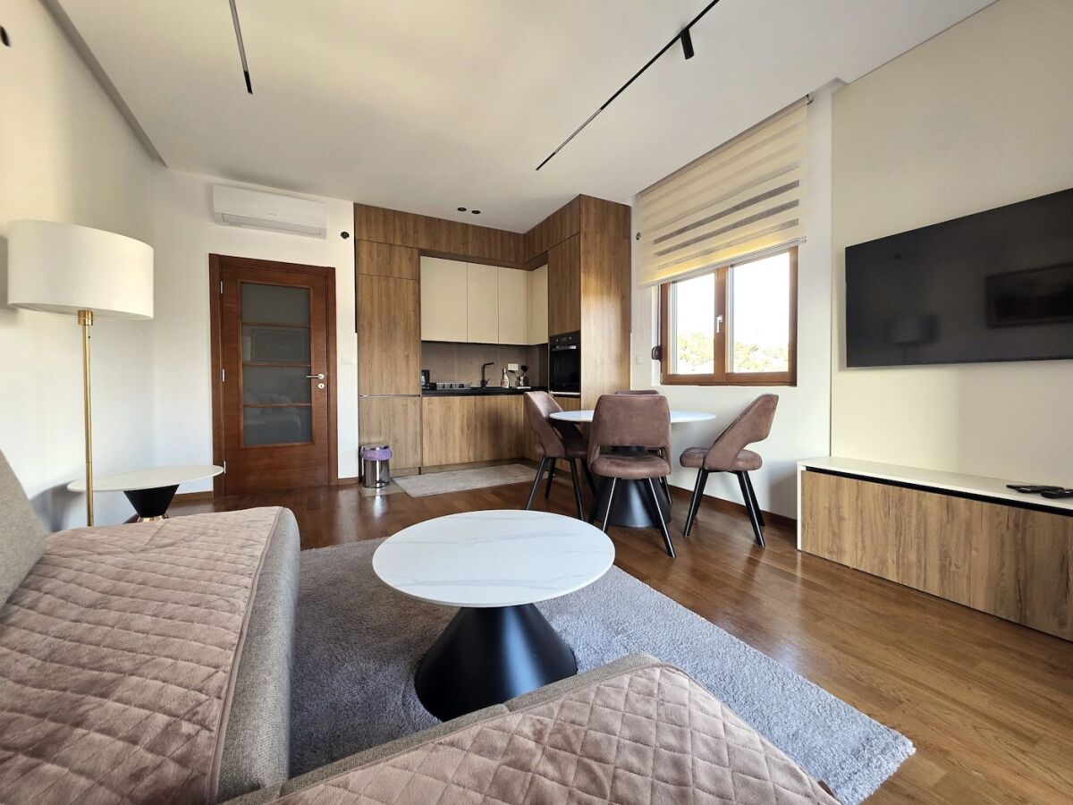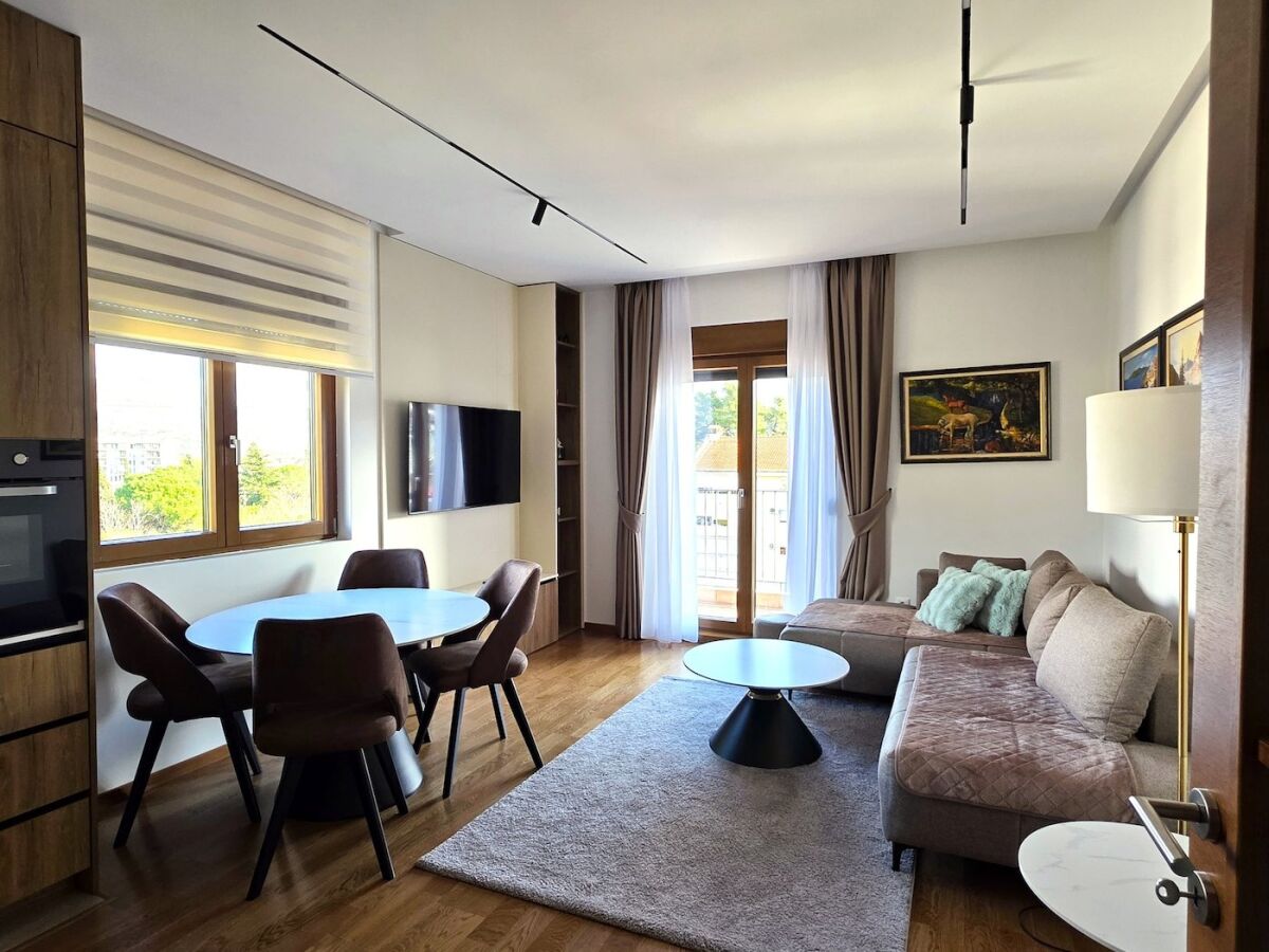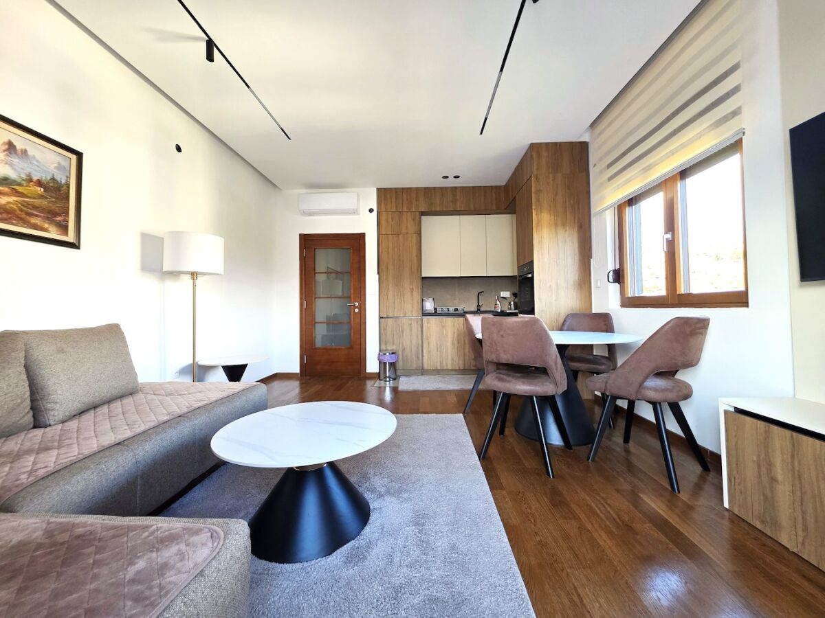 One-room furnished apartment for rent, surface area 49m2, in the neighborhood near Vezirov Most, in Podgorica. It is located in a new building of top quality, contemporary design with a high level of finishing. This apartment combines functionality, modern design and a good location. The apartment has high-quality ceramics, modern interior joinery and high-quality sanitary ware that ensure durability and comfort. The apartment is located on the 5th floor, which gives it a beautiful panoramic view and a lot of natural light throughout the day, it is oriented to the northeast. Structure: entrance hall, living room with dining room and kitchen, bedroom, bathroom and 2 terraces. Despite the central city location, the environment is extremely peaceful, ideal for rest and a comfortable life. When signing the Lease Agreement, the Tenant is obliged to pay a deposit in the amount of one month's rent, which will be returned at the end of the Agreement, if all the provisions of the Agreement have been complied with.