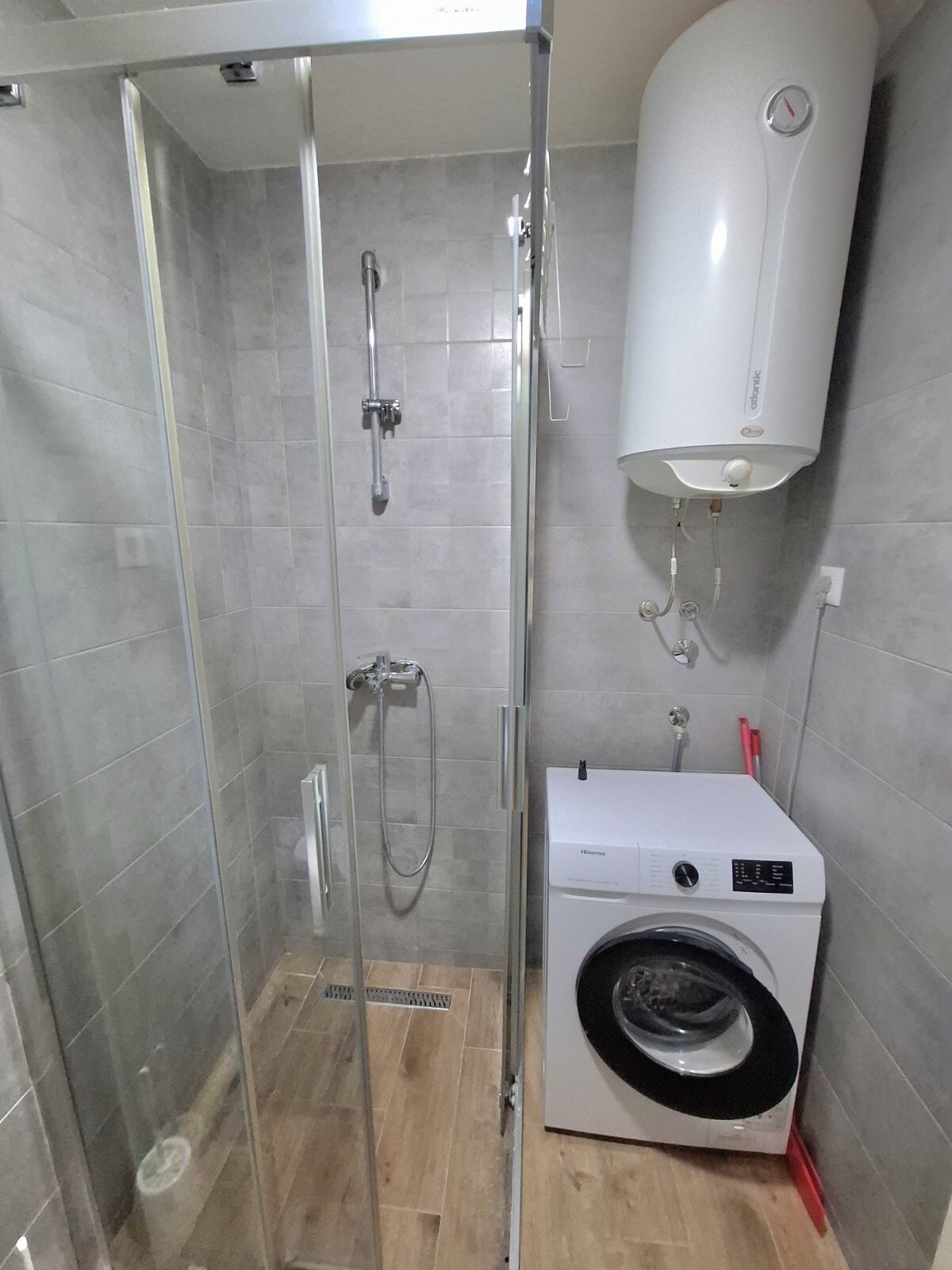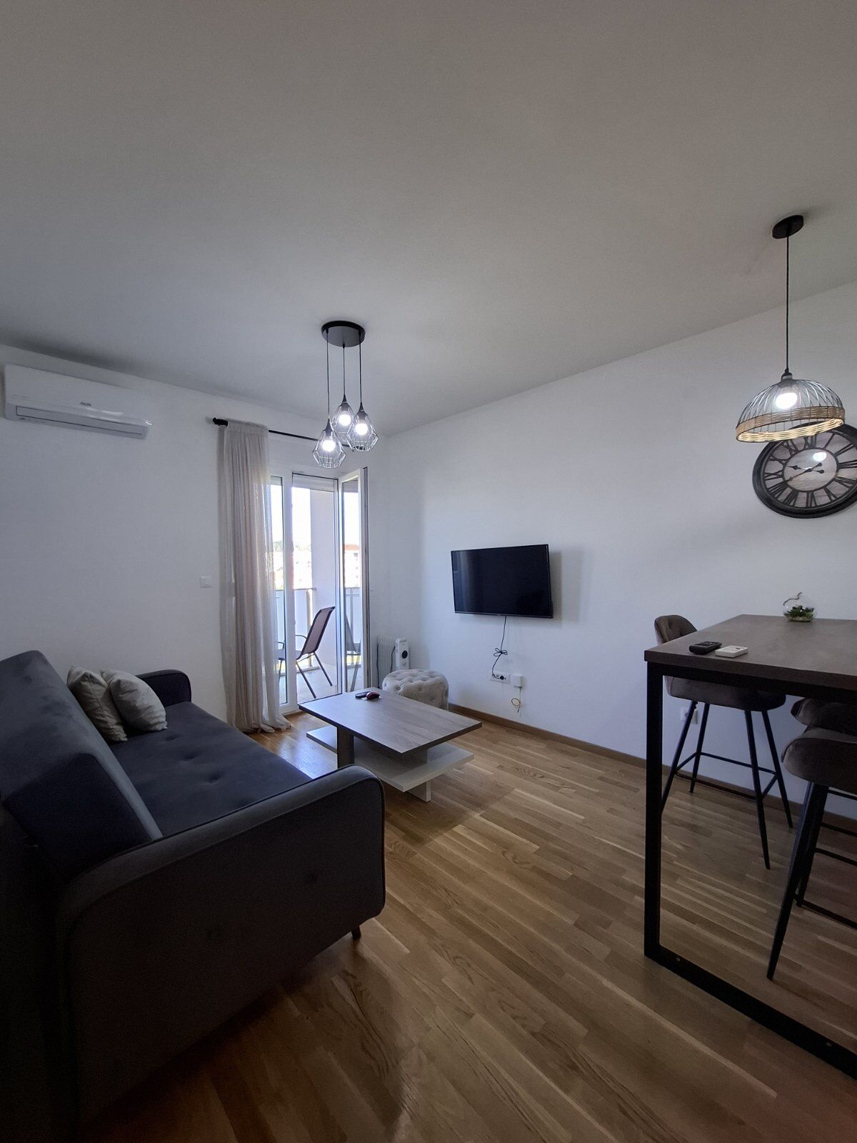 A furnished one-room apartment for rent near Multicom in Zabjelo. The apartment is 37m2 and is located on the 3rd floor. The building has a parking lot under the ramp, an elevator and video surveillance.