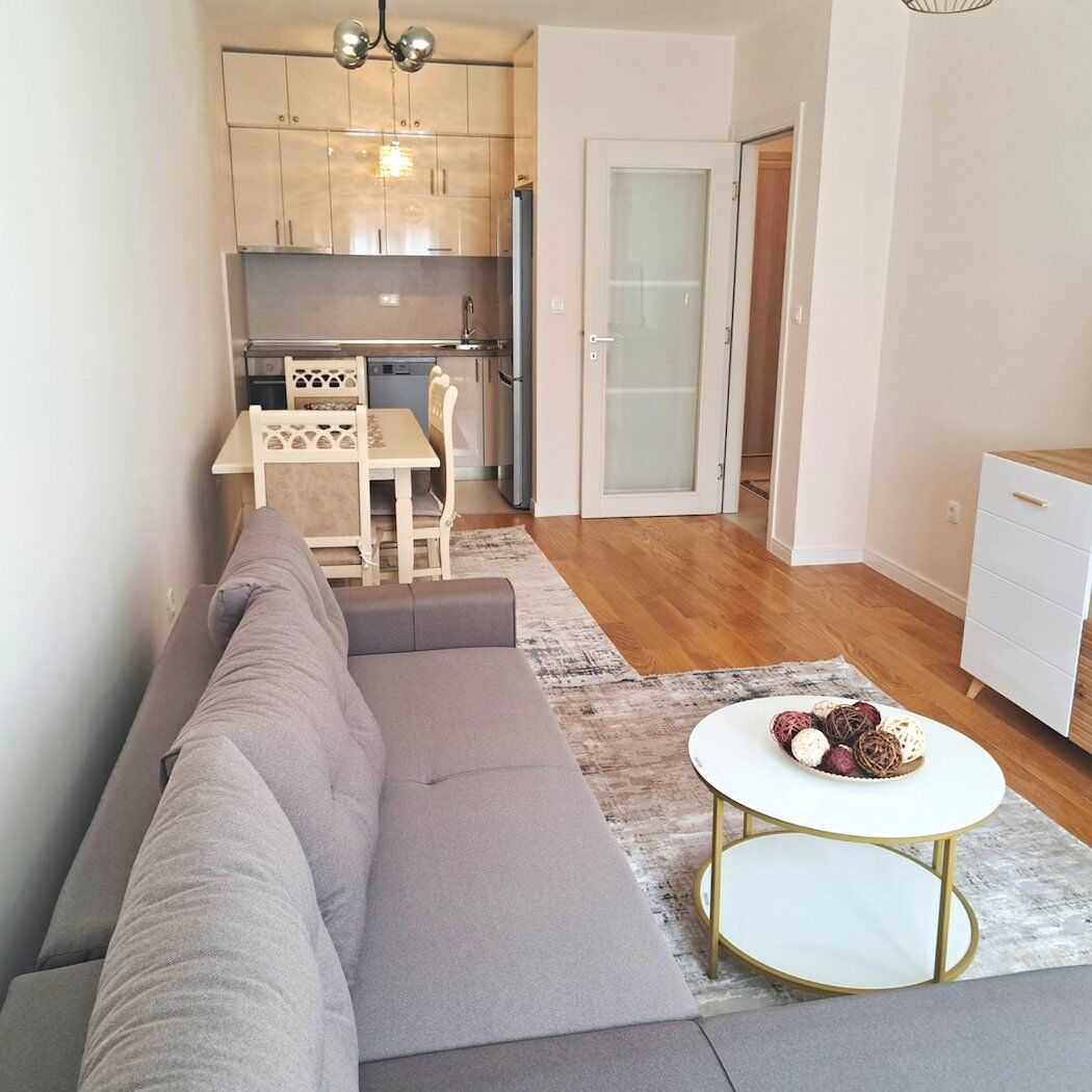 One-room furnished apartment for rent, surface area 46m2 , in Central Point in Podgorica. The apartment is located on the 6th floor, the building has two elevators. It is south-oriented. Structure: entrance hall, living area with dining room and kitchen, bedroom, bathroom and terrace. Heating/cooling is regulated by air conditioning. It is located in the immediate vicinity of two shopping centers, markets, pharmacies, restaurants. When signing the Lease Agreement, the Tenant is obliged to pay the first and last rent and a deposit in the amount of one monthly rent, which will be returned at the end of the Agreement, if all the provisions of the Agreement have been complied with.
