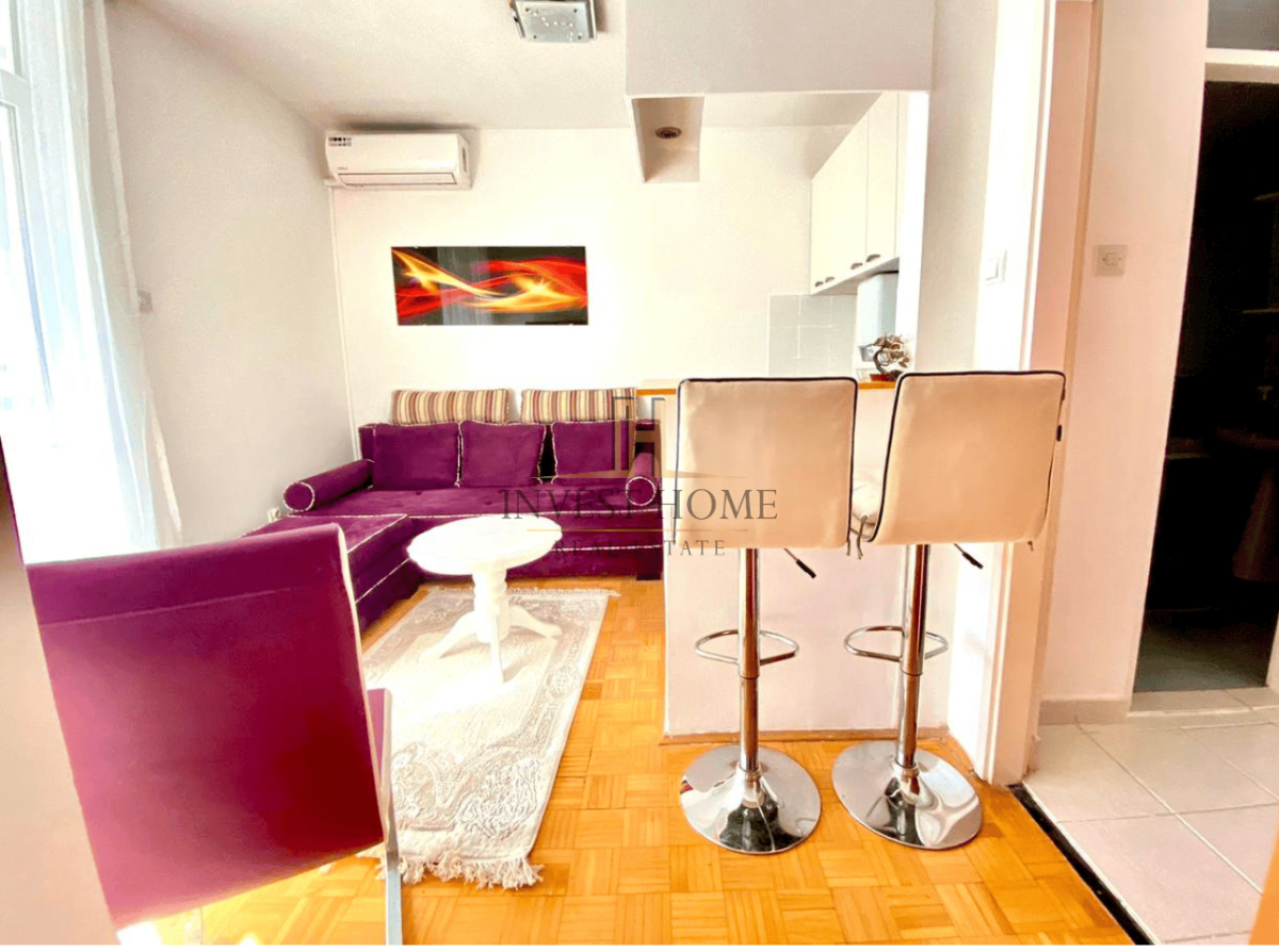 For rent is a one-bedroom apartment in Stari Aerodrom, with an area of 35m2. Structure: living room with dining area, kitchen, bedroom, hallway, bathroom, and two terraces. It is near Ventura Park, elementary school, cafes, restaurants, markets, banks, and other essential city amenities. The apartment is air-conditioned. It is located on the first floor.