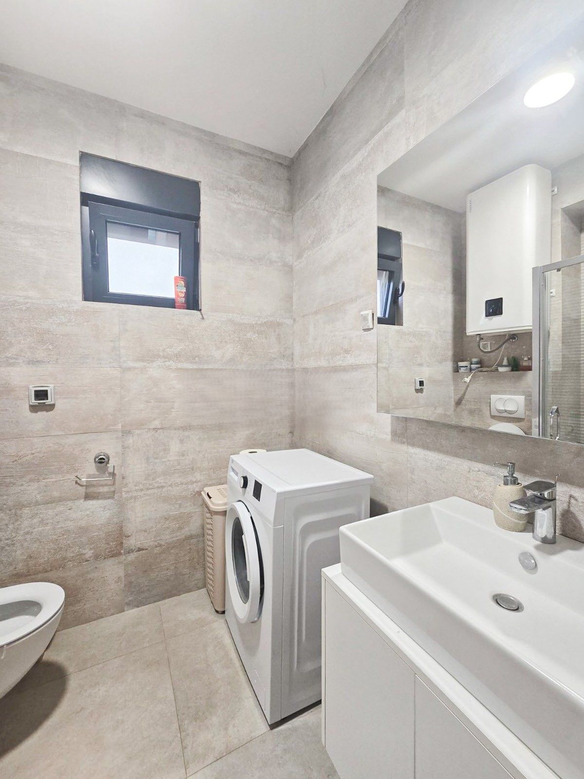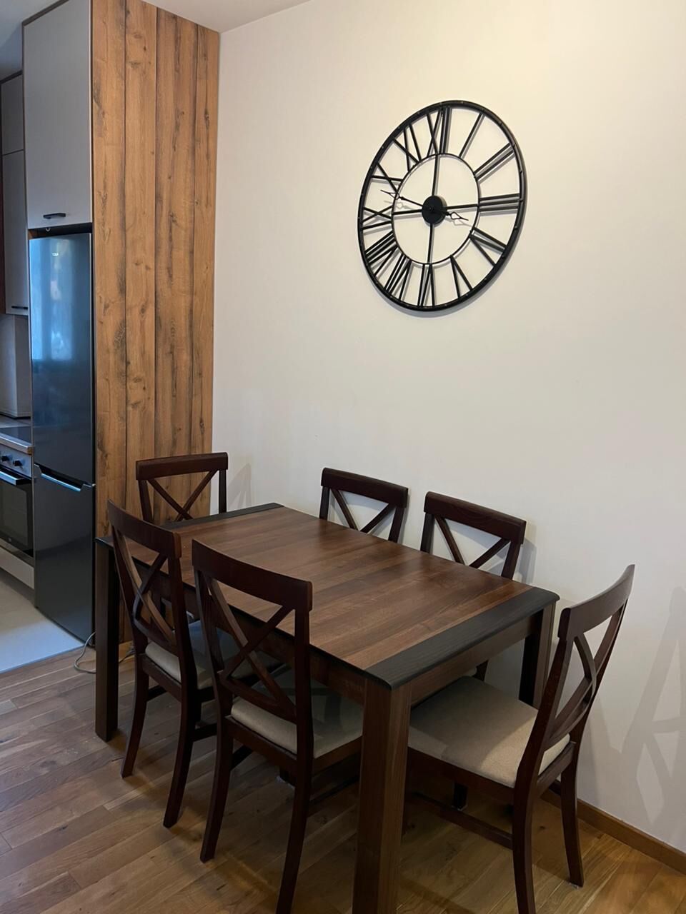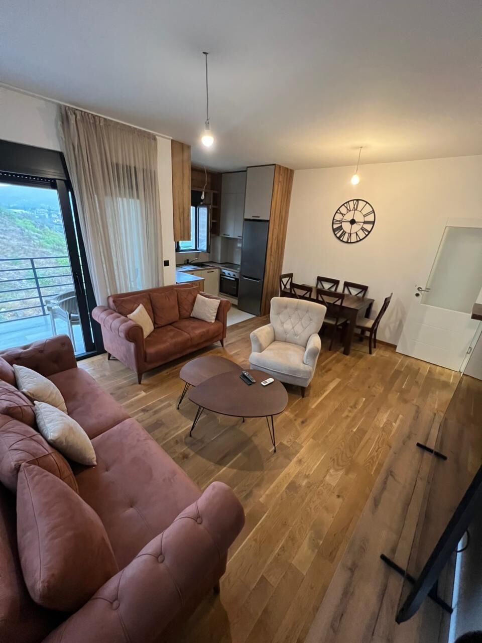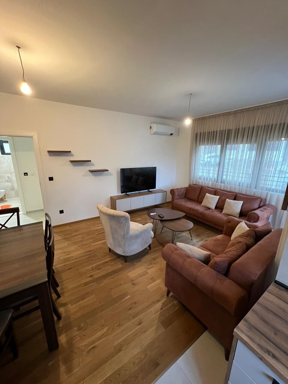 A luxury one-bedroom apartment with an area of 47m² is for rent, located in one of the most sought-after locations in Podgorica – Gorica C. It is positioned on the first floor of a residential building without an elevator, and there is a parking space secured in front of the building. The functional structure consists of: a living room, a kitchen with a dining area, a bedroom, a bathroom, and a balcony. The apartment is fully furnished with quality furniture and ready for move-in.