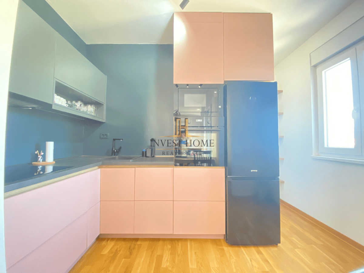 For rent: one-bedroom apartment, City Key, with an area of 49m2. It is located on the third floor of a building that has an elevator. The layout of the apartment includes a living room, kitchen, dining room, bedroom, bathroom, and terrace. The apartment has a parking space. It is in close proximity to cafes, restaurants, banks, and other essential city amenities.