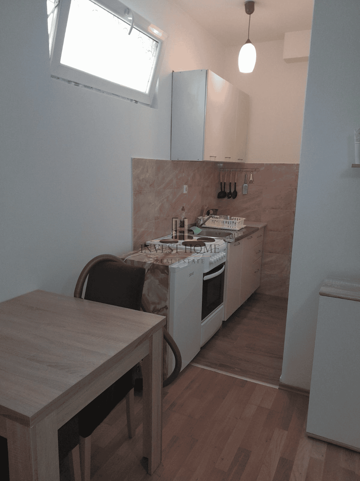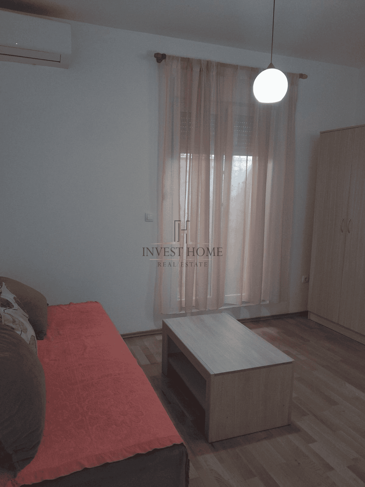 For rent: studio apartment, Zabjelo, with an area of 27m2. It is located in the basement and has a terrace. It is close to elementary schools, restaurants, shopping centers, parks, and other essential city amenities.