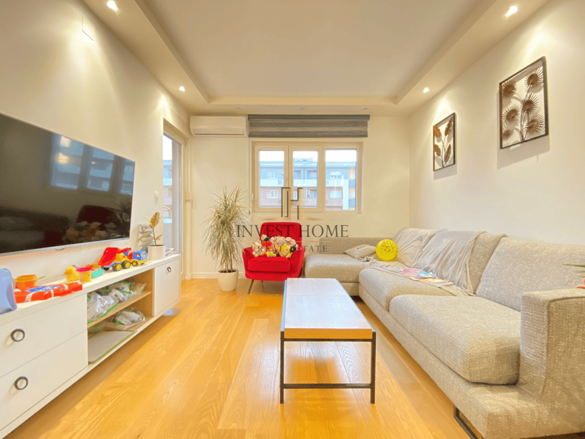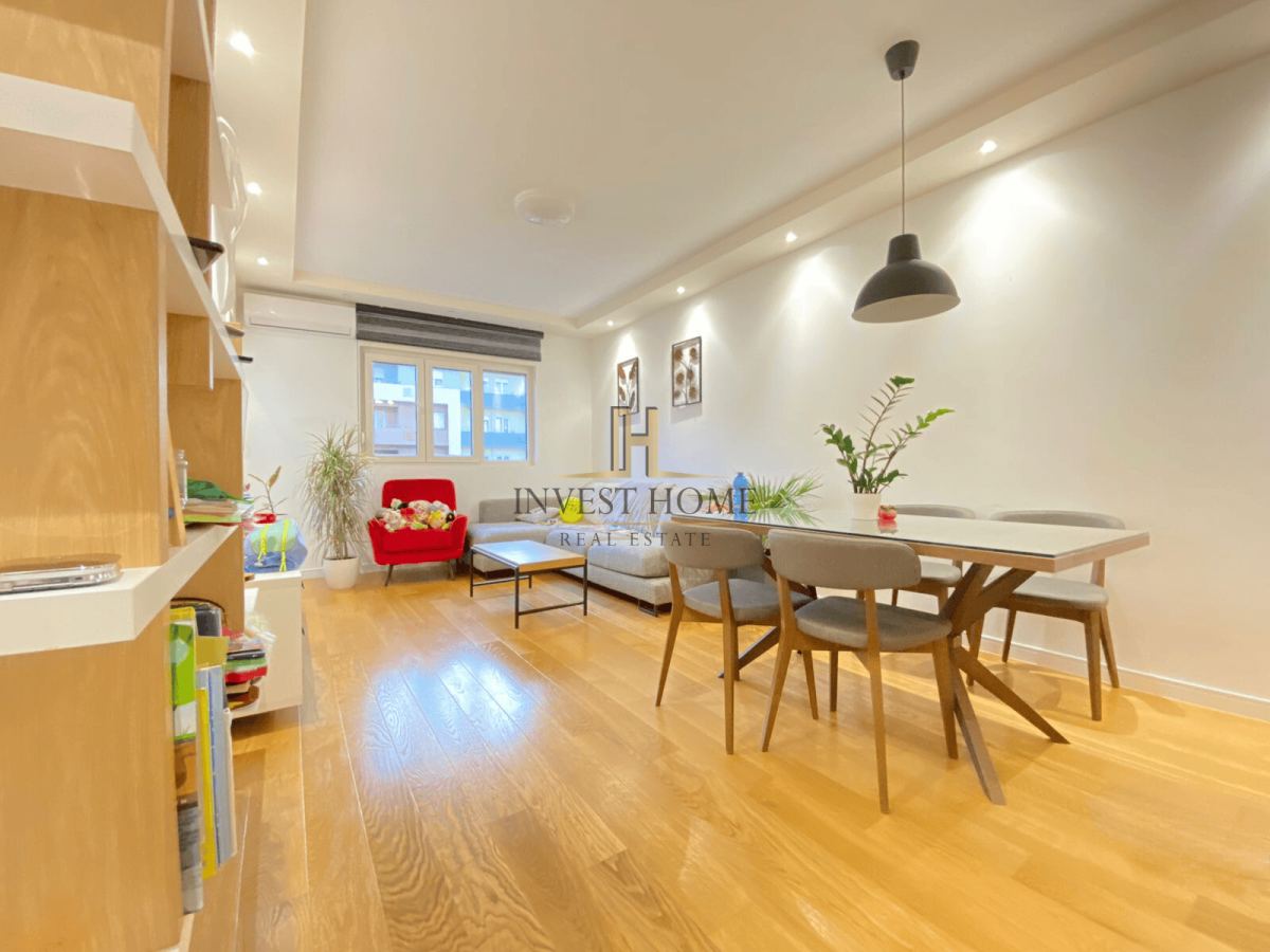 For rent a two-bedroom apartment, Central Point, with an area of 70m2. The apartment is located on the 7th floor of a residential building, which is not the top floor. It is near a shopping center, the main city business zone, as well as other important city amenities. It has two terraces, as well as a garage space.