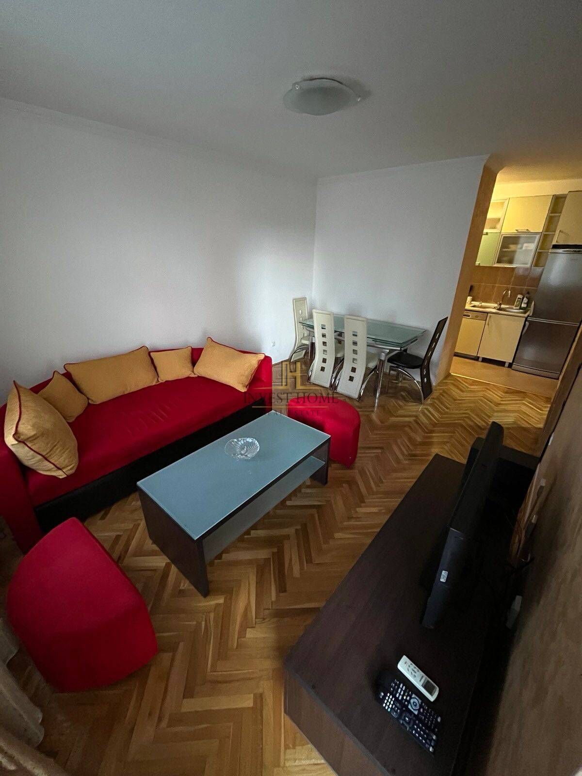 For rent is a one-bedroom apartment in Stari Aerodrom, near the supermarket "Voli", with an area of 45m2. It is located on the first floor of a residential building that has an elevator. The structure of the apartment includes: living room, kitchen, dining room, hallway, bedroom, bathroom, and terrace. It is in close proximity to cafes, restaurants, banks, supermarkets, and other essential city amenities.