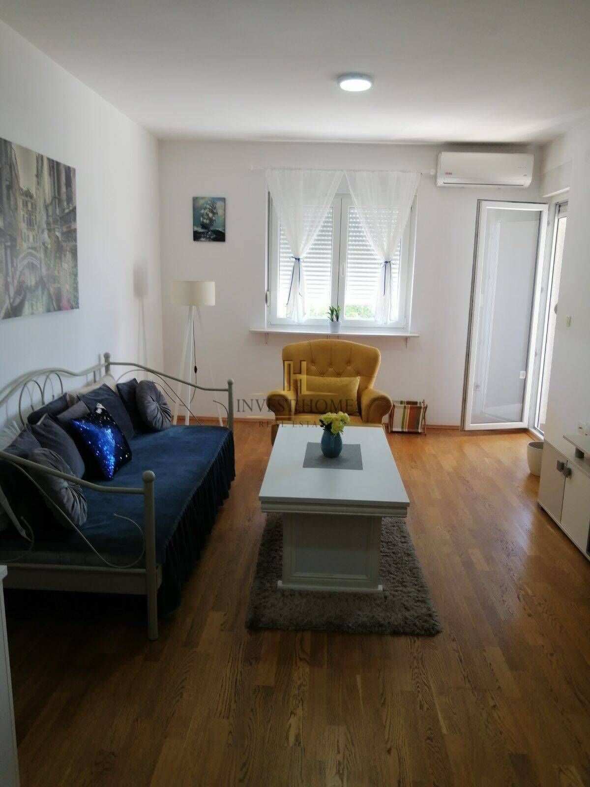 For rent one-bedroom apartment, Tuški put, area 50m2. The apartment has a very good layout, also has a balcony of 5m2, which overlooks the Boulevard. It is located on the 2nd floor of a residential building that has an elevator. Nearby are elementary schools, kindergartens, as well as other important city amenities. In the building there are two grocery and chemical stores, a bakery, a pharmacy, a pet shop, a beauty salon. Internet and cable TV are included in the price.