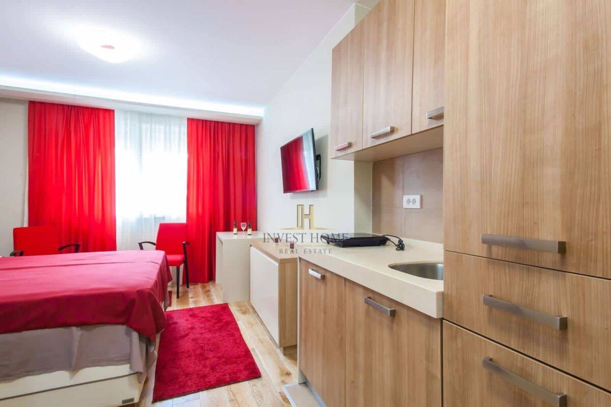 For rent: studio apartment, Preko Morače, with an area of 24m2. It is located on the ground floor of a residential building. It is in close proximity to cafes, restaurants, banks, an elementary school, and other essential city amenities.