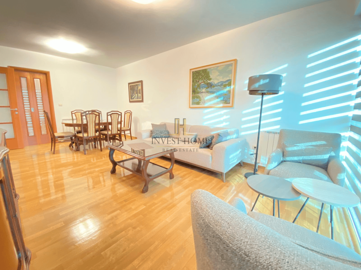 For rent: one-bedroom apartment, Preko Morace - Maxim building, with an area of 62m2. The apartment is located on the 2nd floor in a building that does not have an elevator. It is close to primary and secondary schools, colleges, universities, as well as restaurants, cafes, banks, a shopping center, and the main city business zone. It is south-facing and has central heating. Cable and internet are included in the rental price.