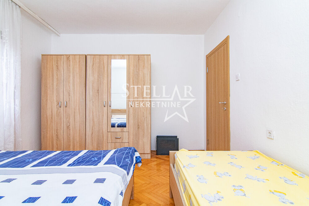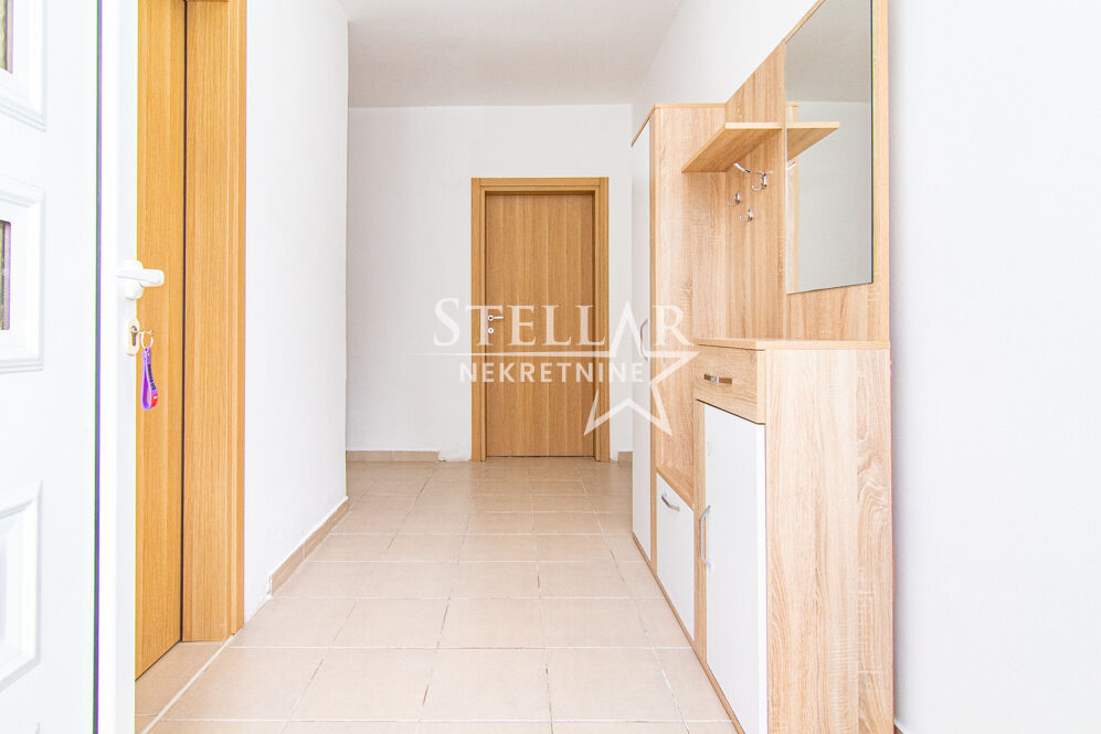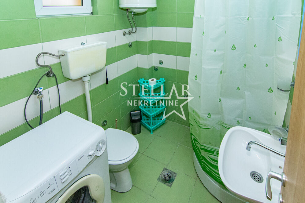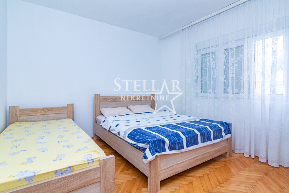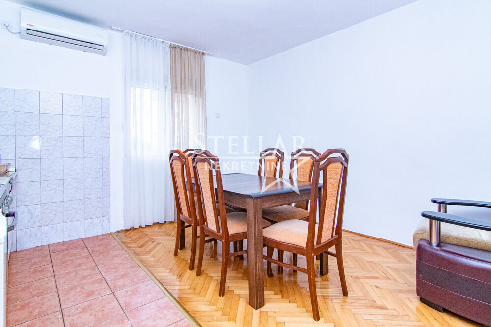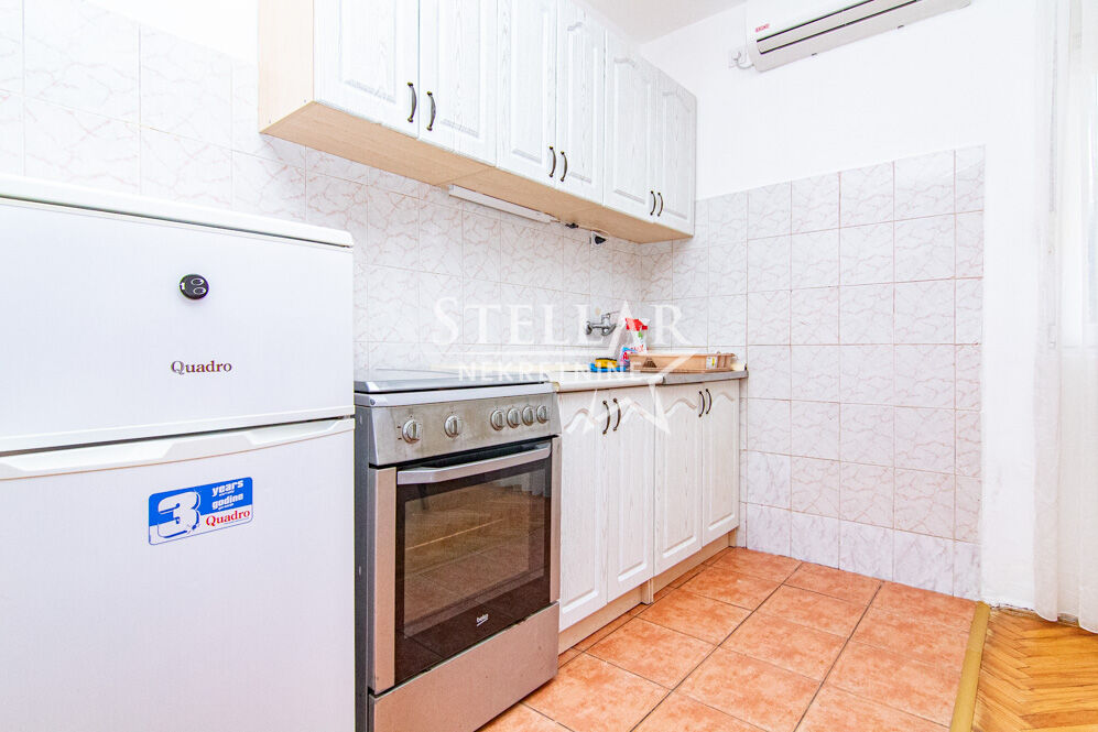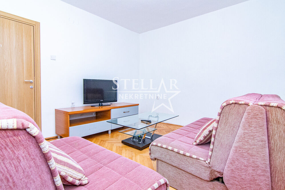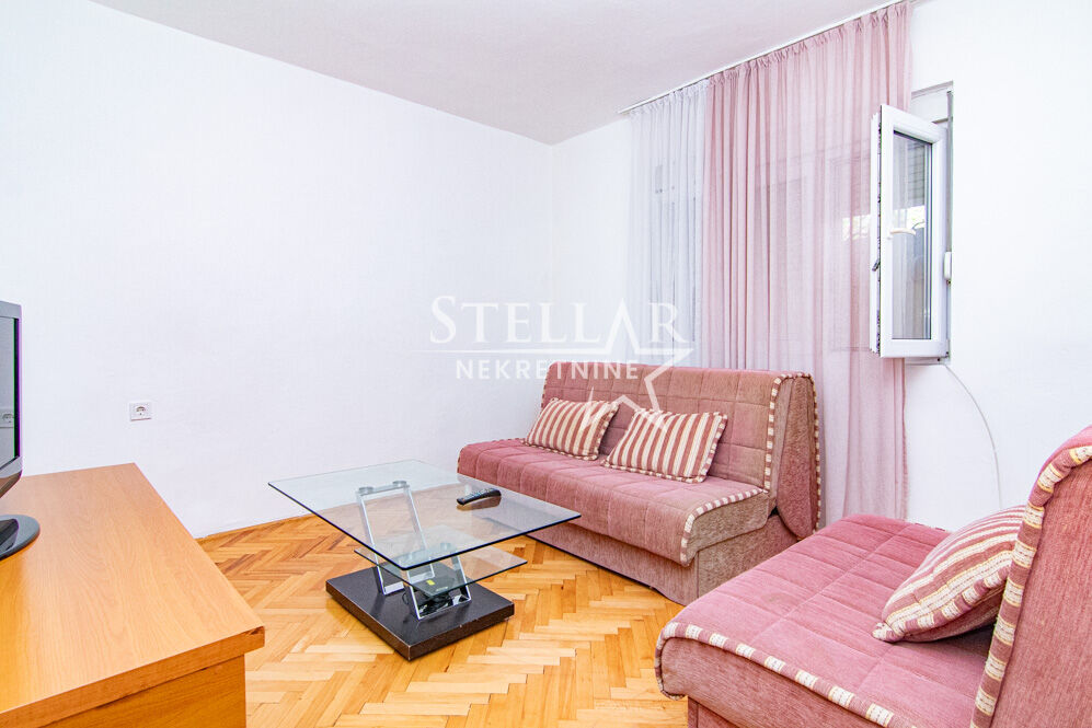 A furnished one-bedroom apartment is for rent on the ground floor of a private house in Stari Aerodrom. The apartment is 70m2 in size and has been recently renovated. The structure of the apartment is such that the living room can also be a bedroom because it is completely separate from the dining room and kitchen. Each room has natural light and ventilation. The apartment has one air conditioner, a washing machine, and a storage room. The bedroom has one double bed and one single bed. In front and behind the house there is a terrace and a yard for relaxing. Parking is on the street next to the fence. It is rented for a longer period of time with a mandatory deposit Property ID M618 +382 67 166 448