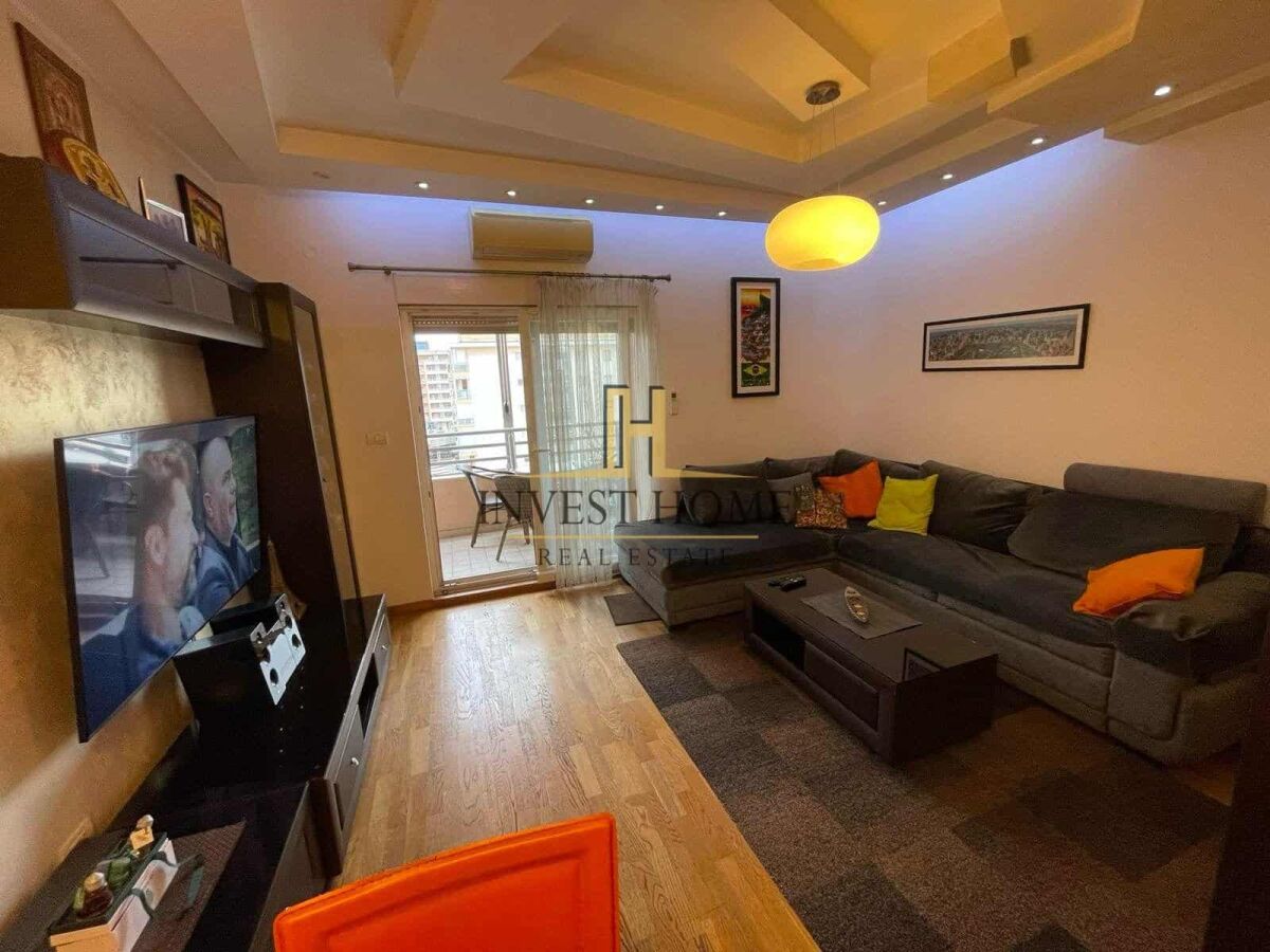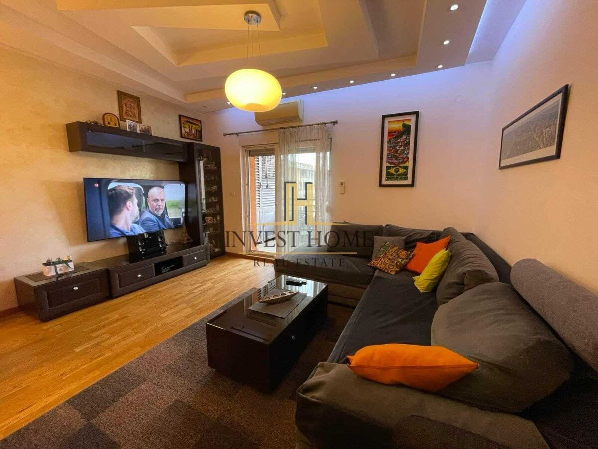 For rent, a two-bedroom apartment in the City neighborhood, with an area of 68m2. It is located on the fourth floor of a residential building that has an elevator. It is in the immediate vicinity of cafes, restaurants, banks, a shopping center, and other important city amenities. The apartment has a bathroom and a toilet, a storage room, as well as its own garage space. There is a possibility to rent an additional garage space for a price of 60€ per month.