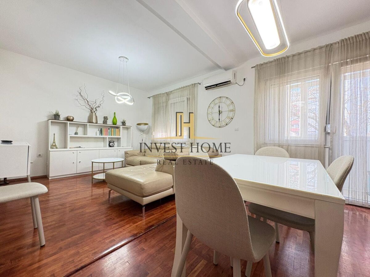 Za izdavanje dvosoban stan Preko Morace, povrsine 73m2. Stan se nalazi na visokom prizemlju stambene zgrade. Struktura stana: dnevni boravak sa kuhinjom I trpezarijom, dvije spavace sobe, radna soba u suterenu, hodnik, kupatilo, balkon. Nalazi se u blizini zgrade stare Vlade, kao I svih gradskih sadrzaja.