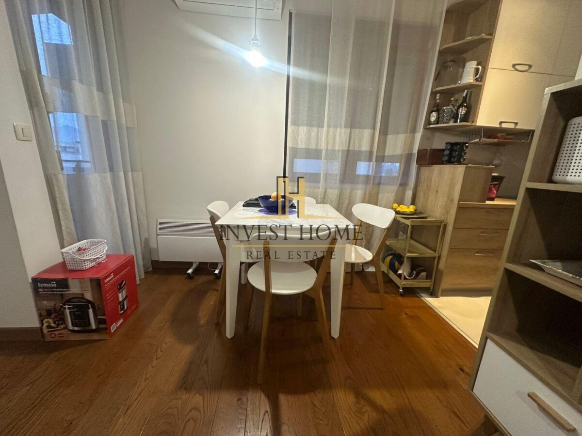 For rent one-bedroom apartment, Ljubovic, area 45m2. The apartment is located on the fourth floor of the residential building Entext which has an elevator. Apartment layout: living room with kitchen and dining room, bedroom, hallway, bathroom, balcony. It is located near the Union hotel, as well as all city amenities. It has a garage space. Internet included in the price.