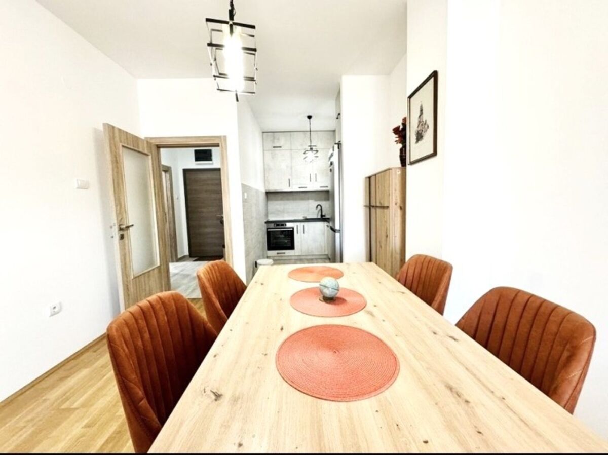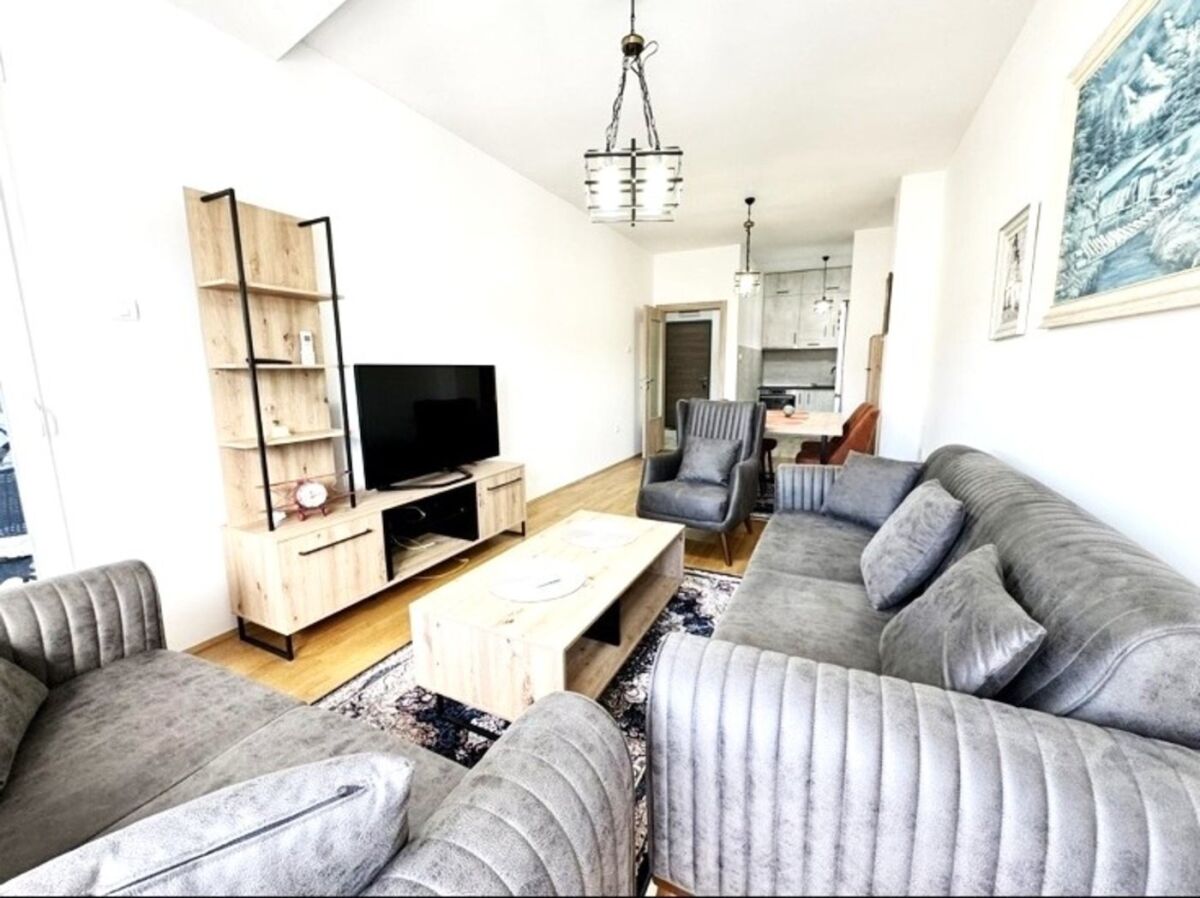 Furnished two-room apartment for rent , 75m2 , near the hill Ljubović , in Podgorica. It is located on the 5th floor of a building that has an elevator, as well as a well-maintained entrance. It is oriented south. Structure: entrance hall, living area with dining room and kitchen, two bedrooms, terrace, bathroom, toilet. Public parking available. When signing the Lease Agreement, the Tenant is obliged to pay the first and last rent and a deposit in the amount of one monthly rent, which will be returned at the end of the Agreement, if all the provisions of the Agreement have been complied with.