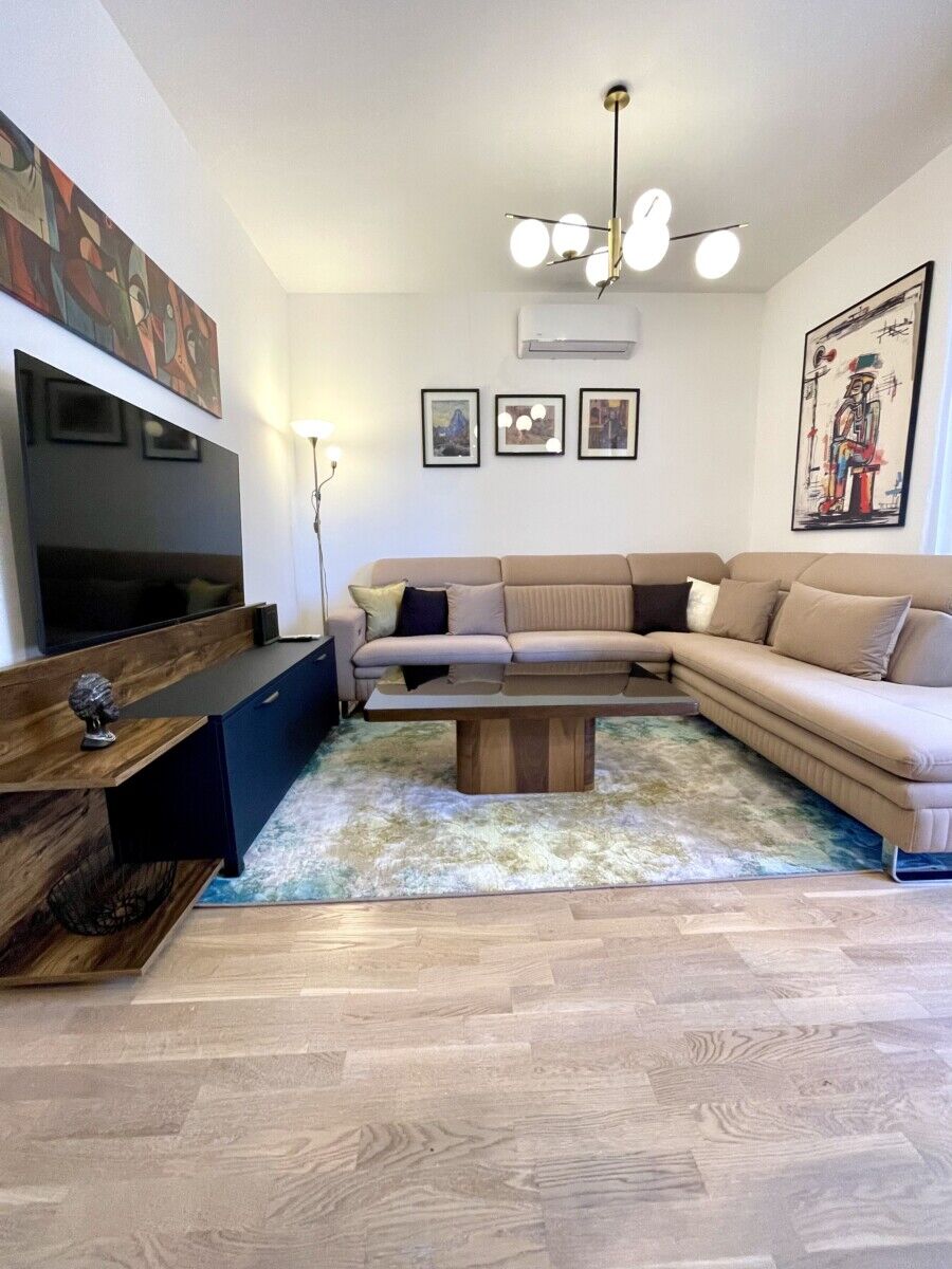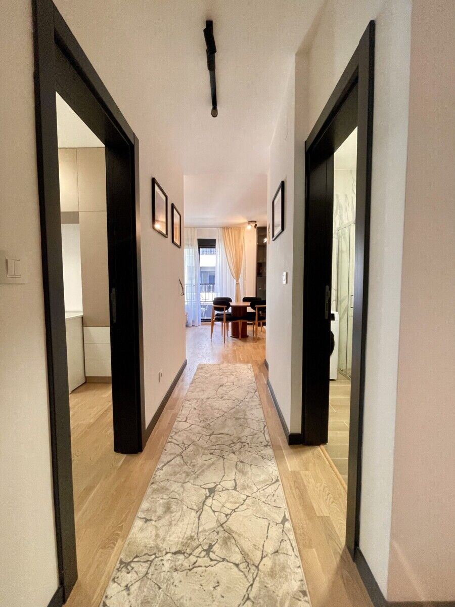 For rent is a luxuriously furnished two-bedroom apartment with an area of 60 m². Location - Gorica C, with a secured parking space. The balcony offers an unobstructed view of the city, and the rental price is €1,000 per month.For more information +38268321550 Jovana