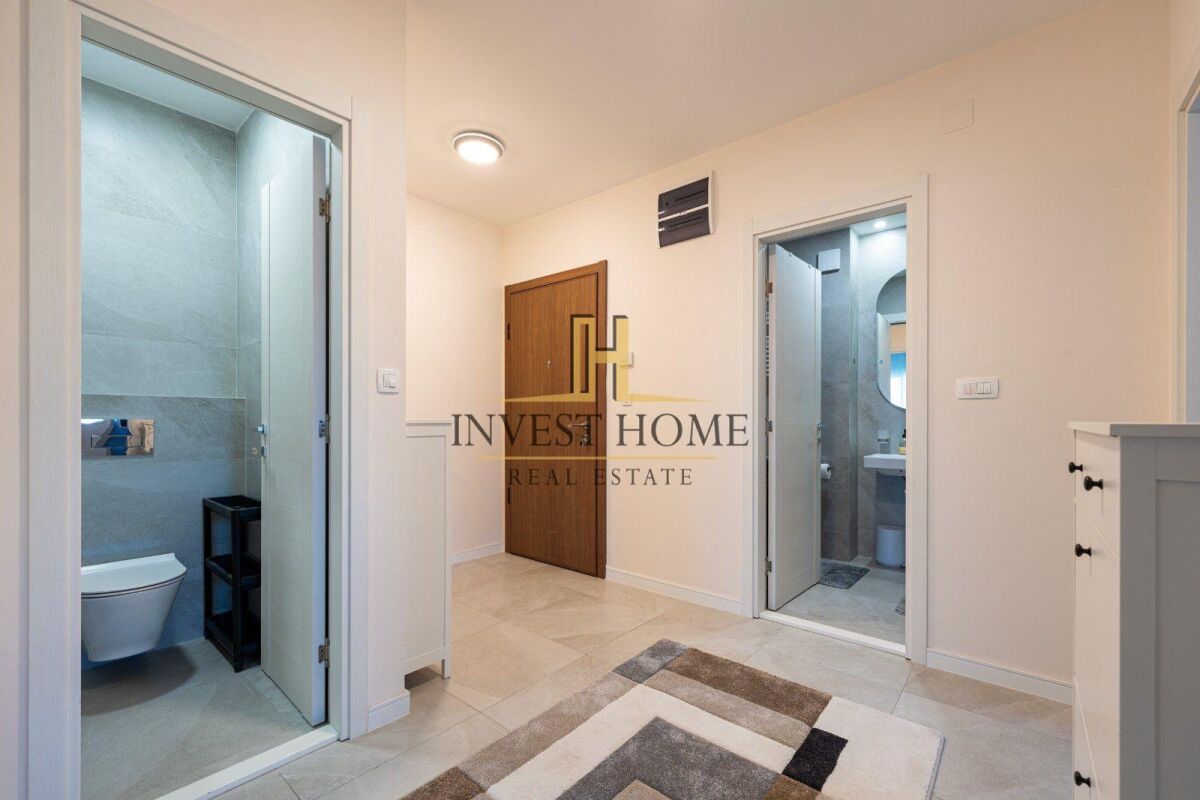 For rent, a two-bedroom apartment in Central Point, with an area of 72m2. The apartment is located on the ninth floor of a residential building that has an elevator. Apartment layout: living room with kitchen and dining room, two bedrooms, hallway, bathroom, toilet, balcony. It is located near cafes, restaurants, markets, as well as all city amenities.
