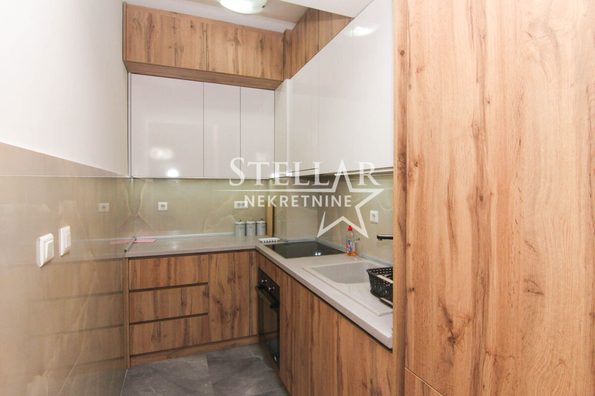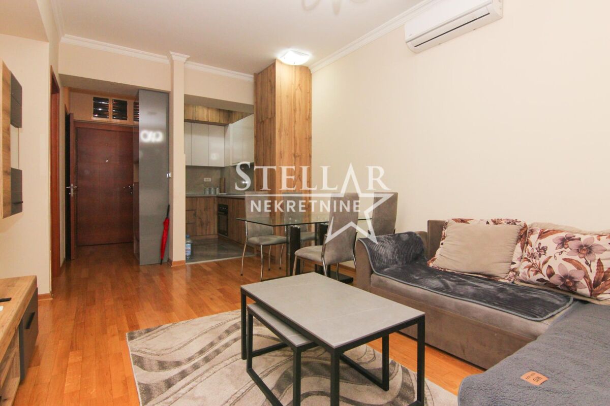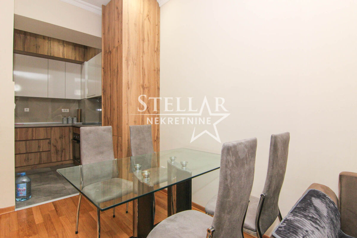 A fully furnished one-bedroom apartment of 41m2 is for rent. The apartment is located on the third floor in a building with an elevator. The orientation is south. There is an air conditioner in the living room, and other appliances include a washing machine and a dishwasher. The apartment is pet-friendly (with an additional fee of 50€/month). It is located in an excellent location near the Nikić hotel, just a few minutes' walk from the city center. Nearby are schools, kindergartens, restaurants, shops, gyms, and other important institutions. Parking is public and available all around the building, and a garage space can also be rented from the hotel. It is rented for a longer period with a mandatory deposit. Property ID S99 +382 69 618 445