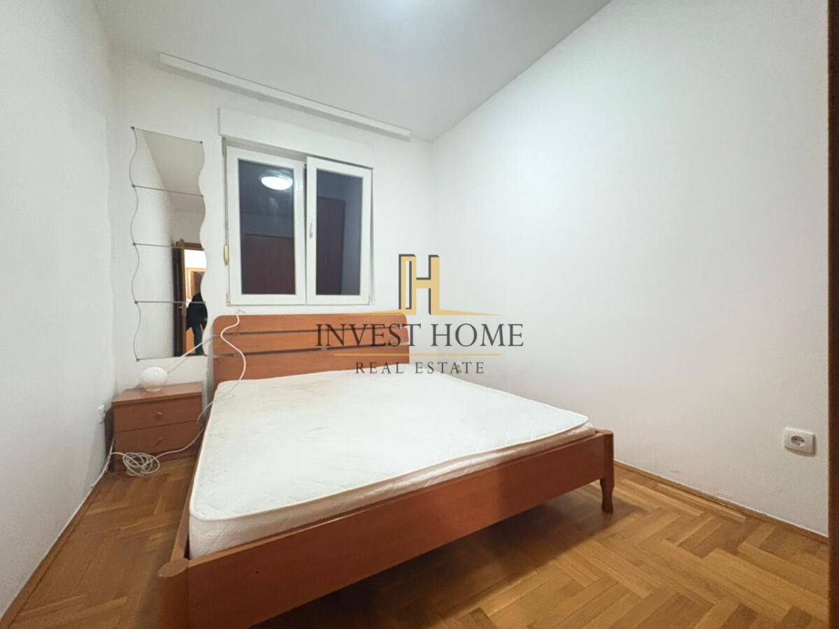 For rent one-bedroom apartment in Stari Aerodrom, area 40m2. The apartment is located on the fifth floor of a residential building that has an elevator. Apartment layout: living room with kitchen and dining room, bedroom, hallway, bathroom, balcony. It is located near the Sherlock Holmes cafe, as well as all city amenities.