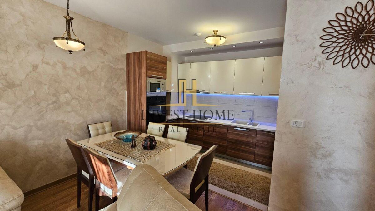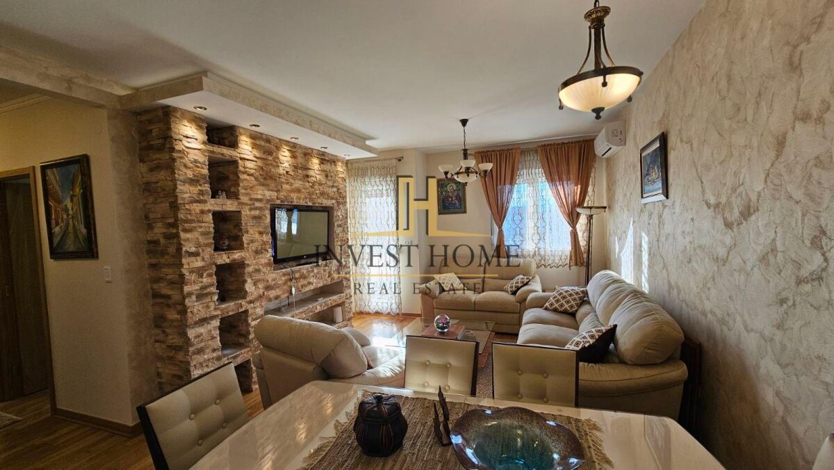 For rent two-bedroom apartment in City quarter, area 64m2. The apartment is located on the third floor of a residential building that has an elevator. Apartment layout: living room with kitchen and dining room, two bedrooms, hallway, bathroom, toilet, balcony. It is located opposite Voli market, close to all city amenities. It has a garage space.