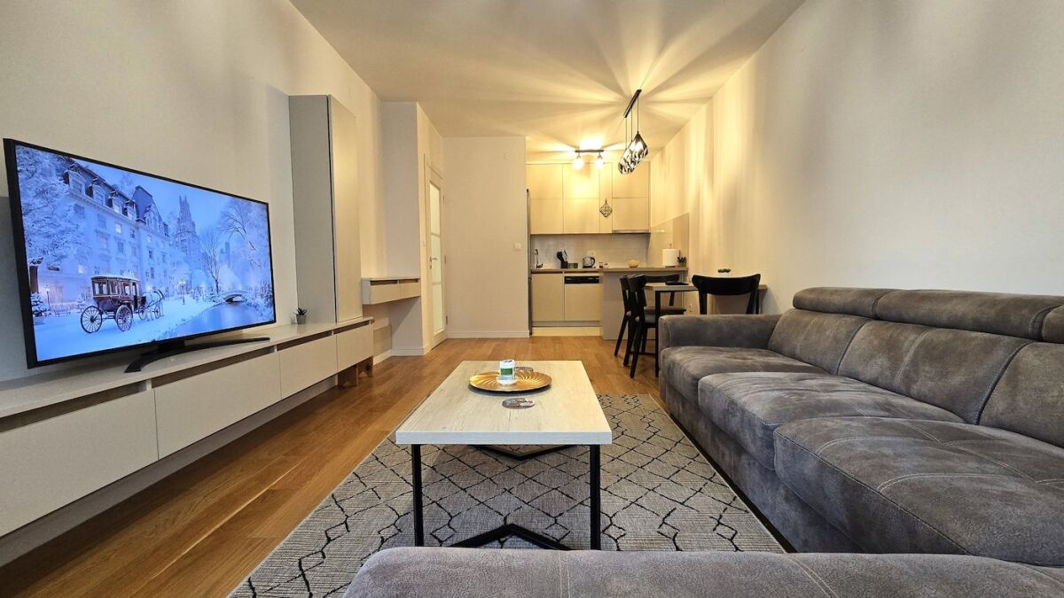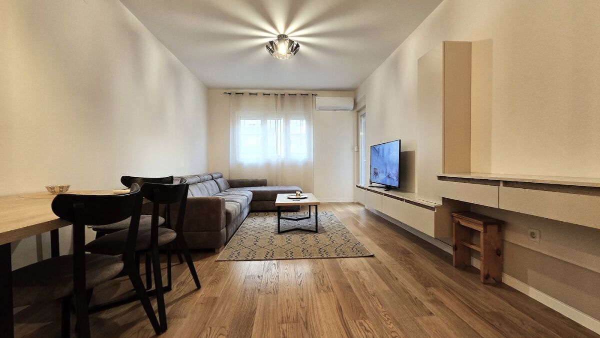 One-room nicely furnished apartment for rent, surface area 49m2, in Central Point in Podgorica. The apartment is located on the 4th floor of the new Zetagradnja building The building has two elevators and a nicely decorated entrance. It is south-oriented. Structure: entrance hall, living area with dining room and kitchen, bedroom, bathroom and terrace. The apartment is fully equipped with new furniture and appliances. It has a garage space that is included in the rental price. When signing the Lease Agreement, the Tenant is obliged to pay a deposit in the amount of one month's rent, which will be returned at the end of the Agreement, if all the provisions of the Agreement have been complied with.