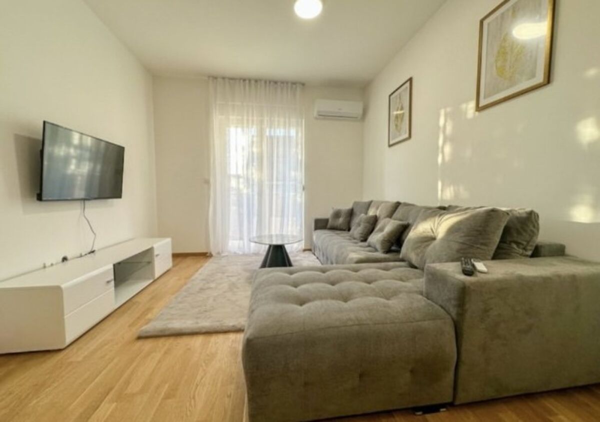 One-room furnished apartment of 46m² for rent, in Zabjelo in Podgorica. It is located on the 1st floor in Iva Vizina Street. It is oriented west. Structure: entrance hall, living room with dining room, kitchen, bedroom, bathroom, terrace. The apartment is completely new and unoccupied. The layout of the rooms is functional and comfortable, ideal for a comfortable life. One garage space is included in the rental price. When signing the Lease Agreement, the Lessee is also obliged to pay a deposit in the amount of one monthly rent, which will be returned at the end of the Agreement, if all the provisions of the Agreement have been complied with.